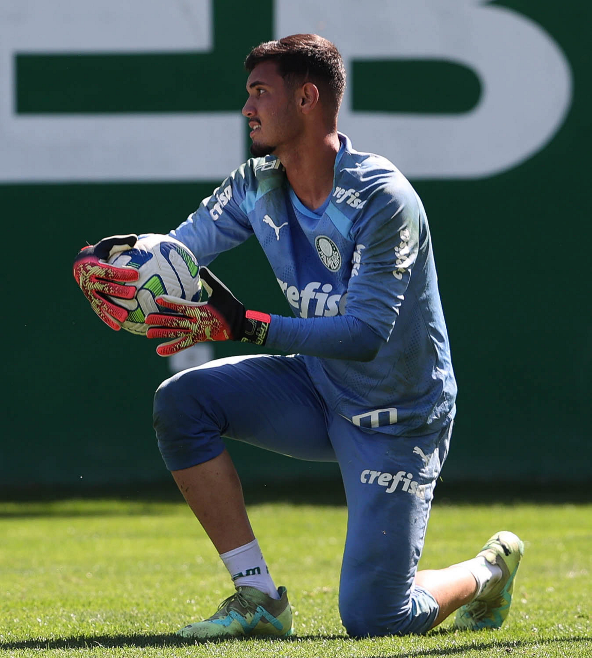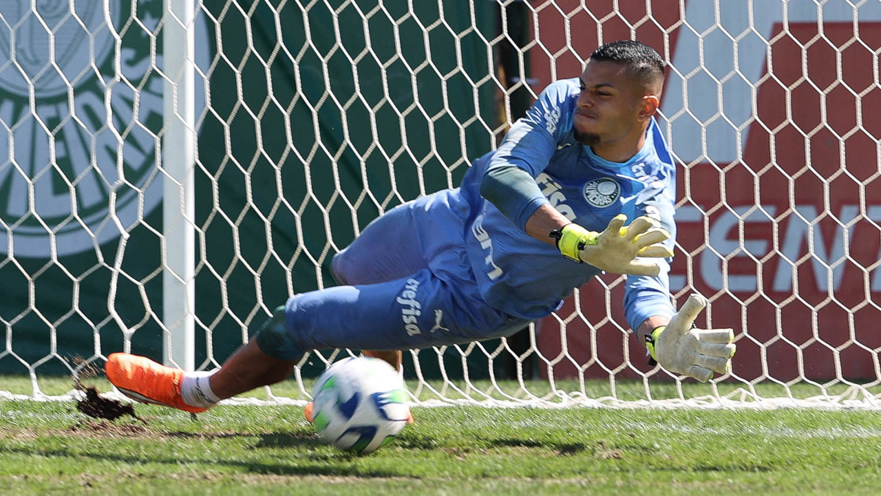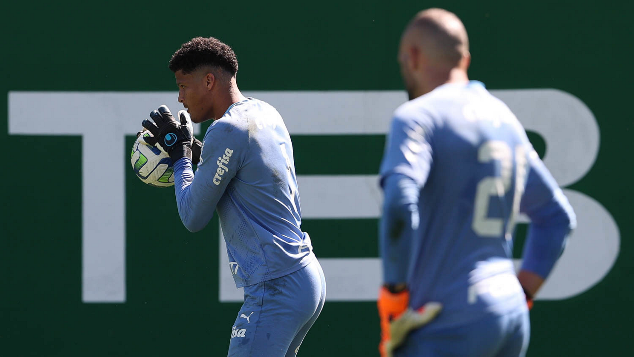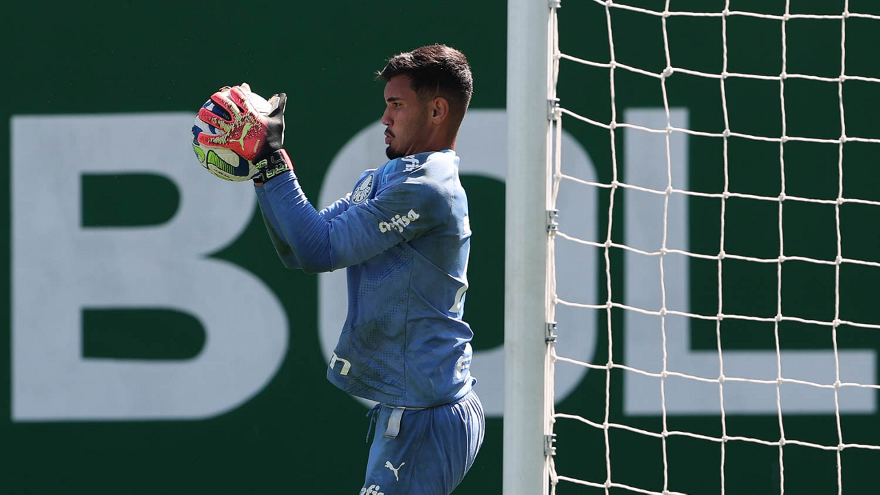 O goleiro Kaique, da SE Palmeiras, durante treinamento, na Academia de Futebol. (Foto: Cesar Greco/Palmeiras/by Canon)