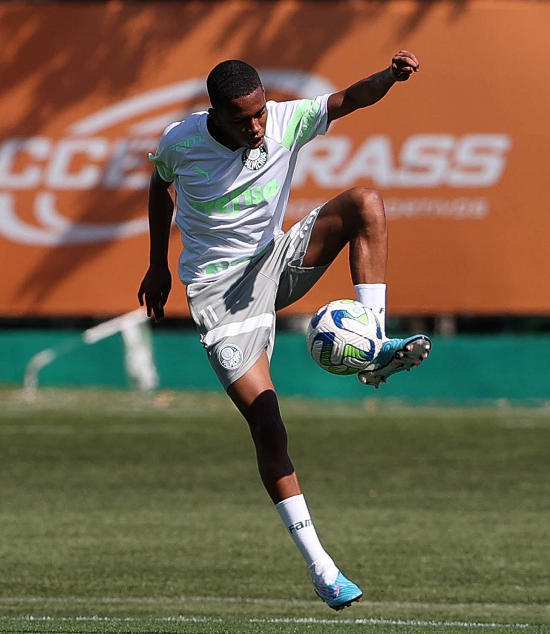 O jogador Estêvão, da SE Palmeiras, durante treinamento, na Academia de Futebol. (Foto: Cesar Greco/Palmeiras/by Canon)