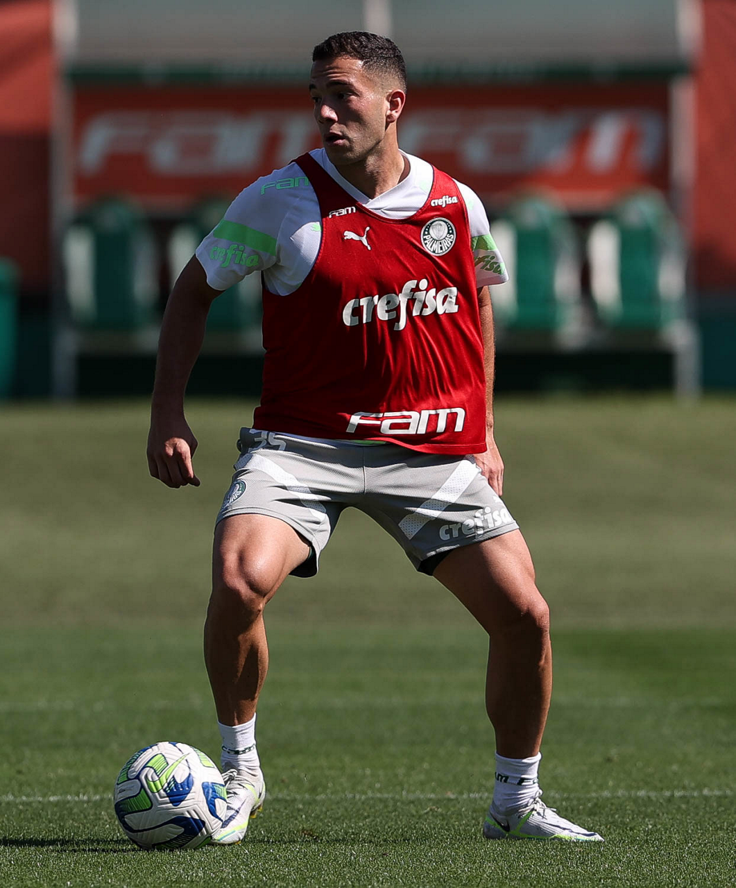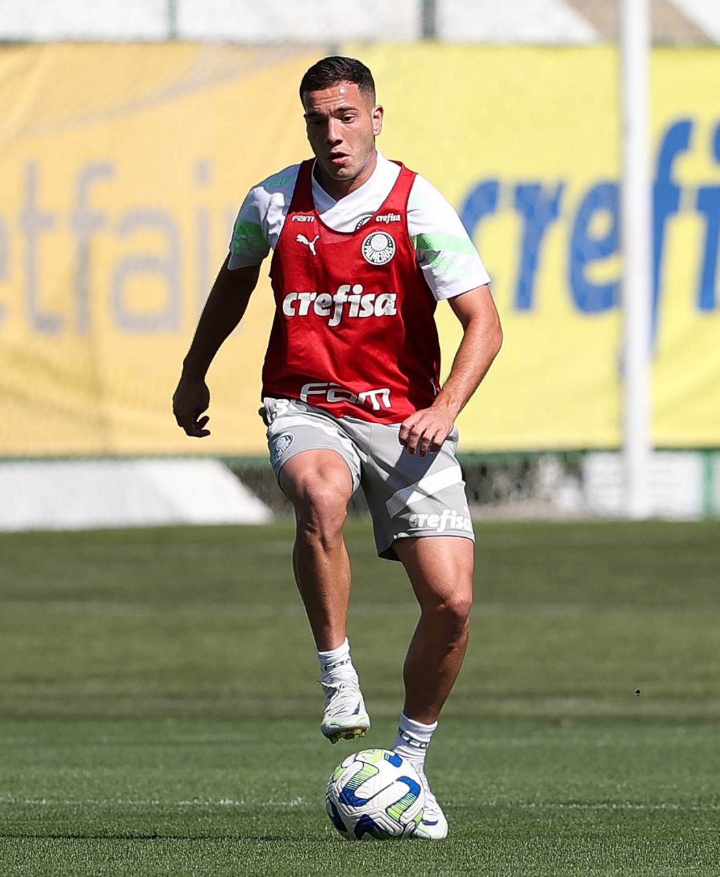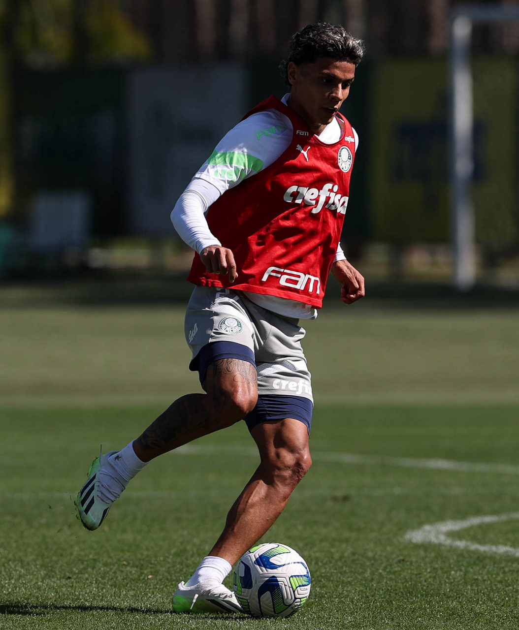 O jogador Richard Ríos, da SE Palmeiras, durante treinamento, na Academia de Futebol. (Foto: Cesar Greco/Palmeiras/by Canon)