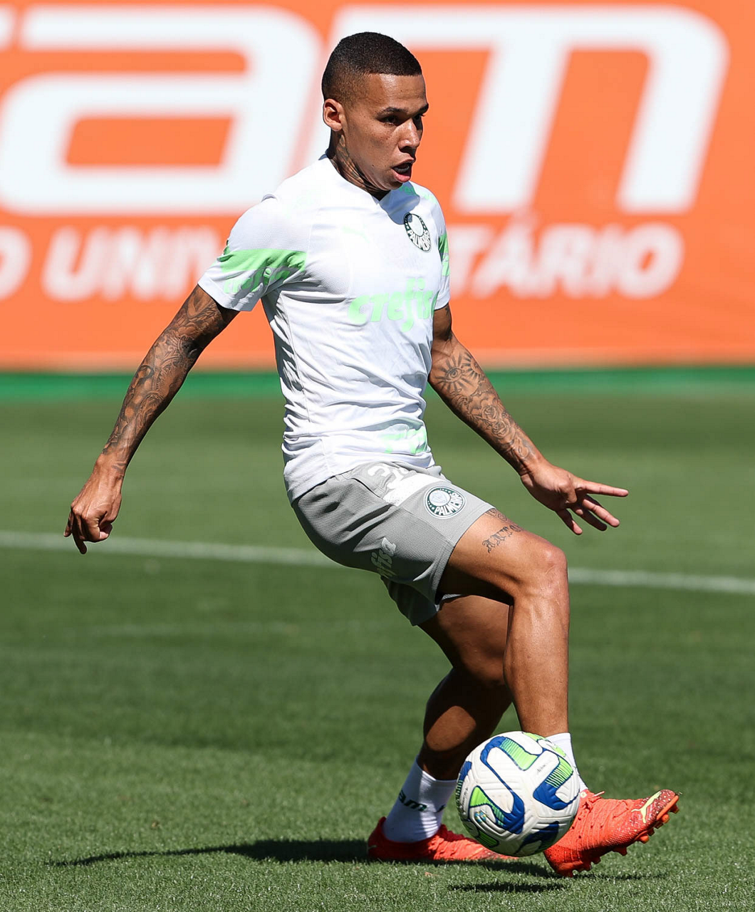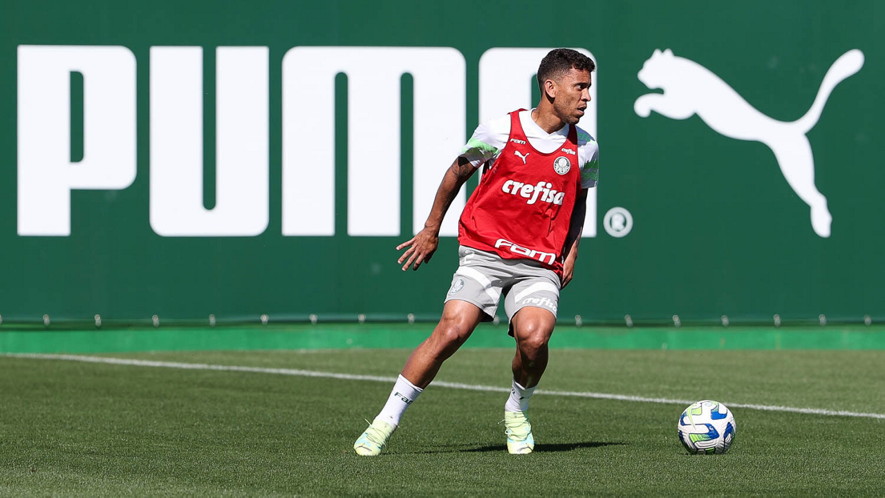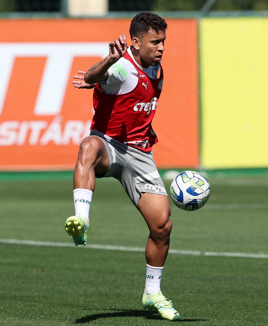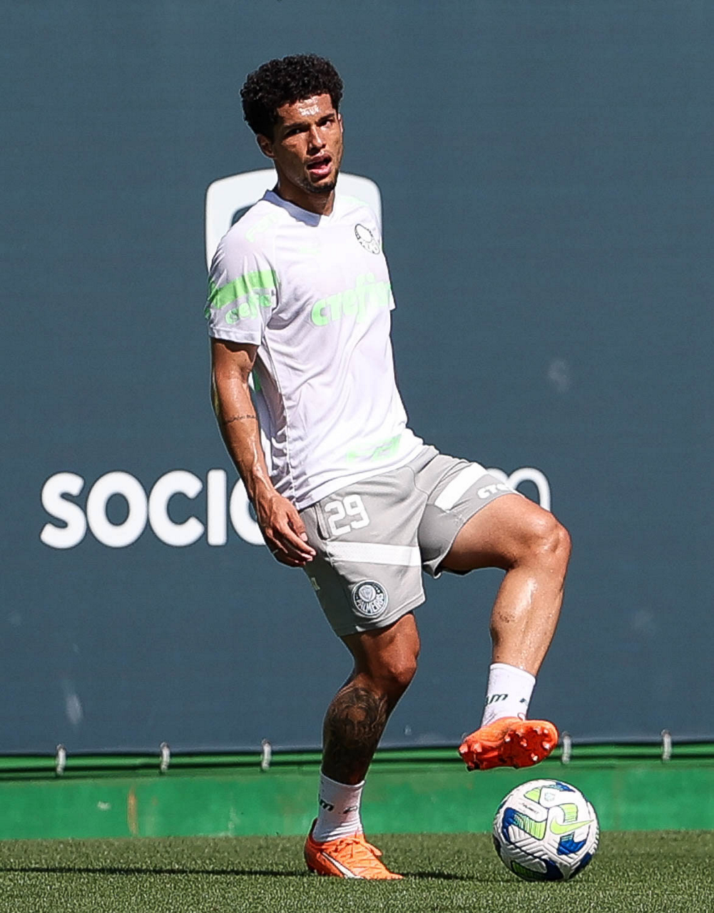 O jogador Richard Ríos, da SE Palmeiras, durante treinamento, na Academia de Futebol. (Foto: Cesar Greco/Palmeiras/by Canon)