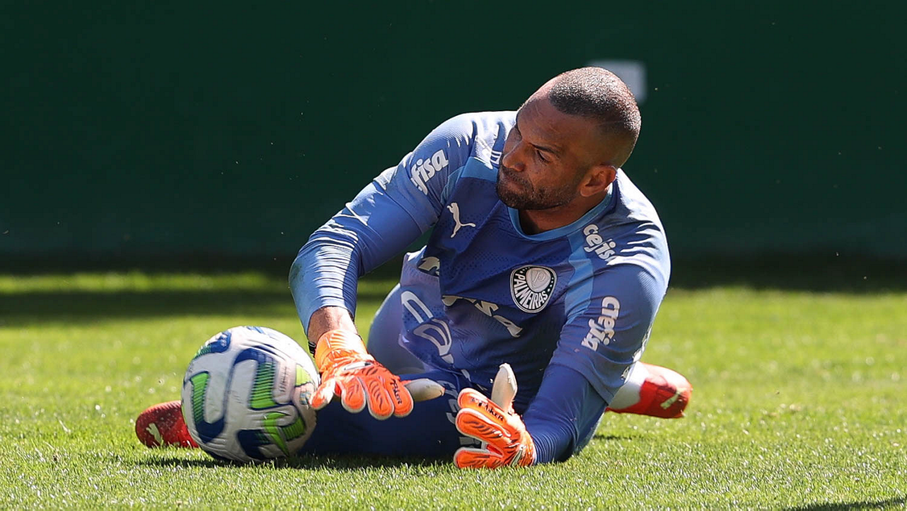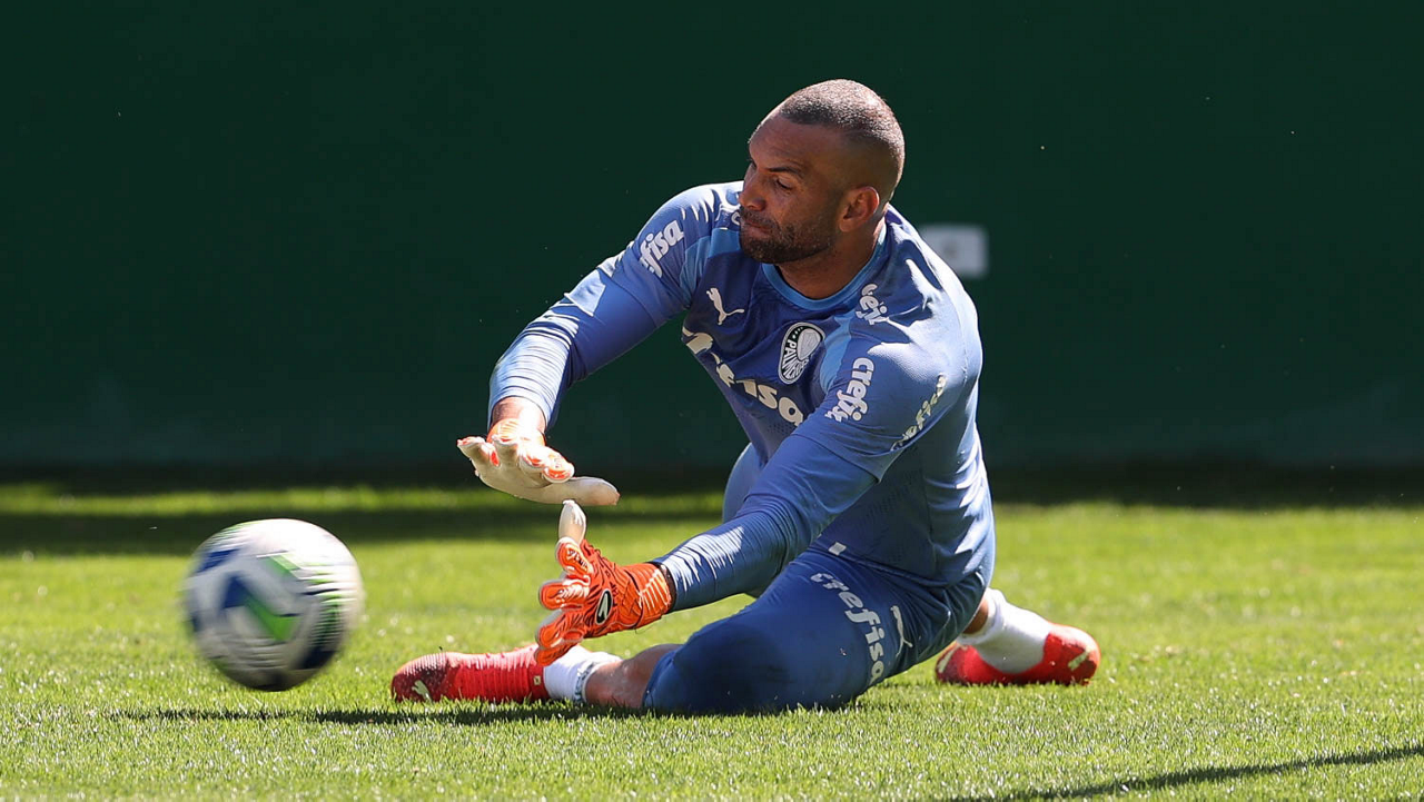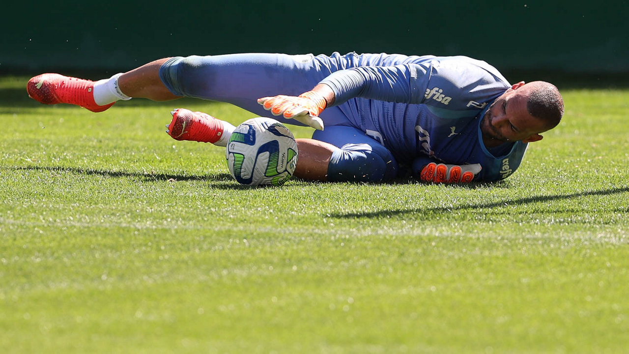 O goleiro Weverton, da SE Palmeiras, durante treinamento, na Academia de Futebol. (Foto: Cesar Greco/Palmeiras/by Canon)