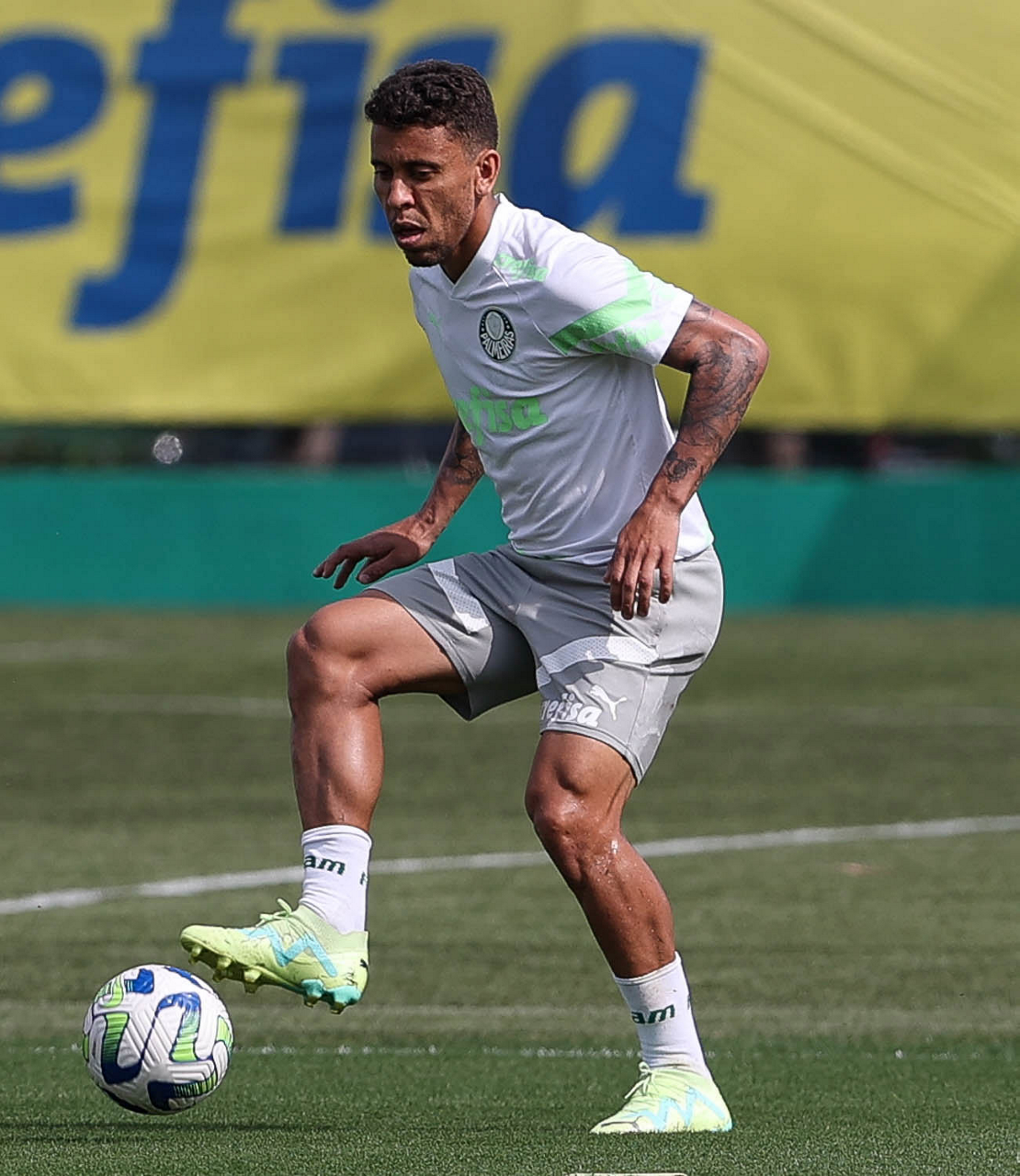 O jogador Marcos Rocha, da SE Palmeiras, durante treinamento, na Academia de Futebol. (Foto: Cesar Greco/Palmeiras/by Canon)