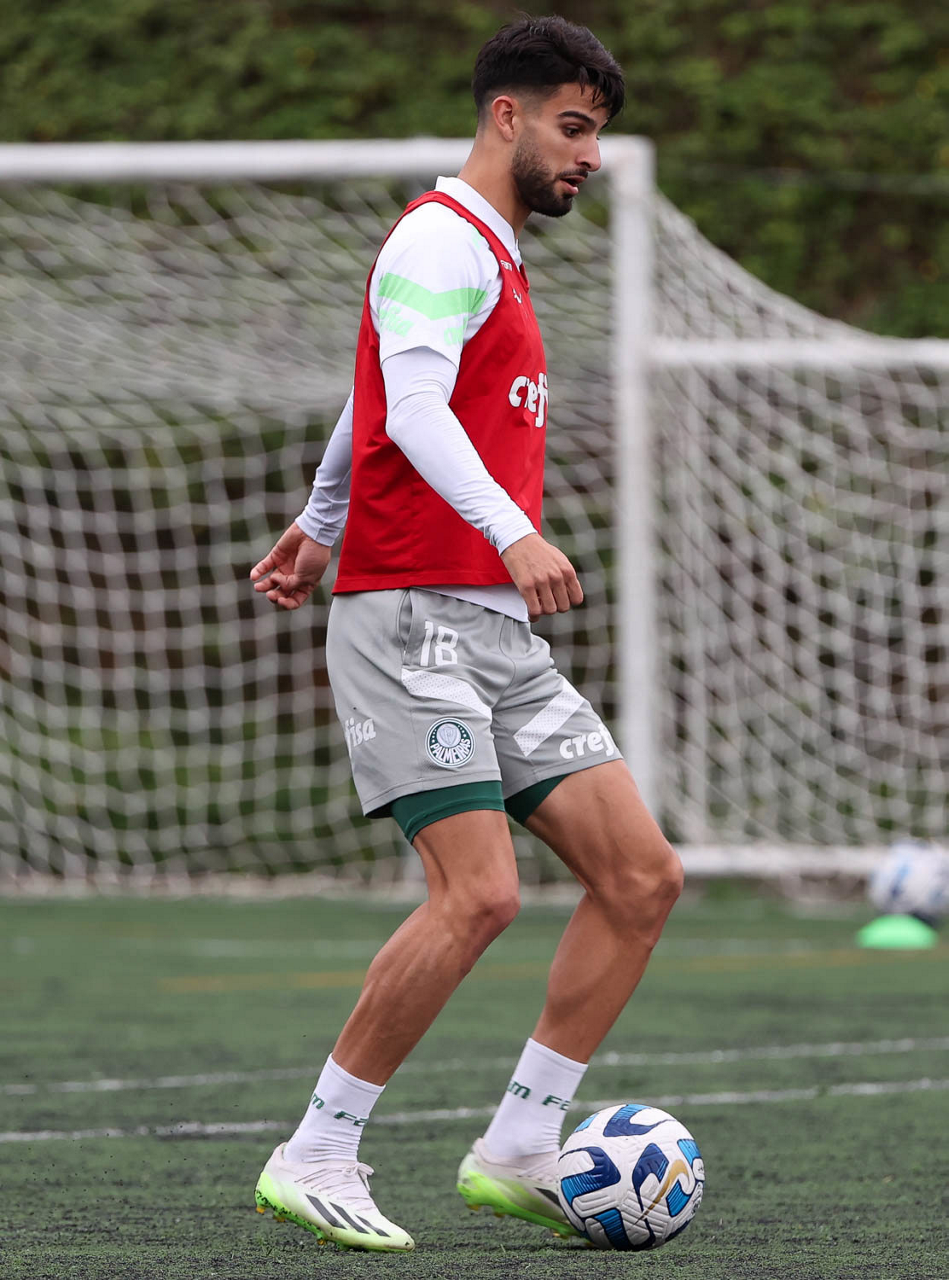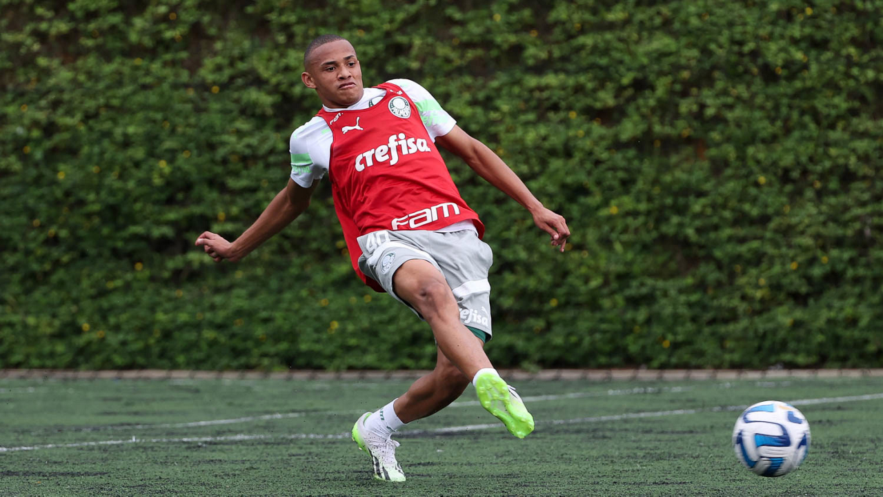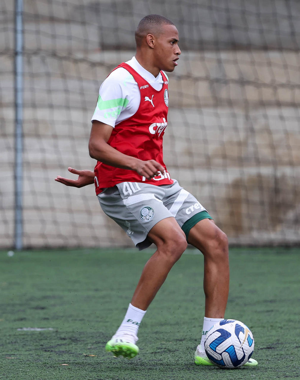 O jogador Gabriel Menino, da SE Palmeiras, durante treinamento, na CT do Sócrates Valência. (Foto: Cesar Greco/Palmeiras/by Canon)