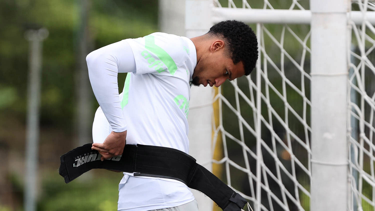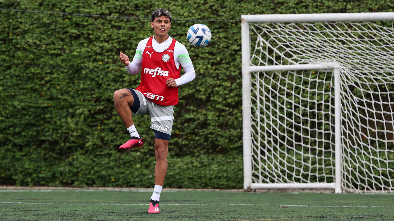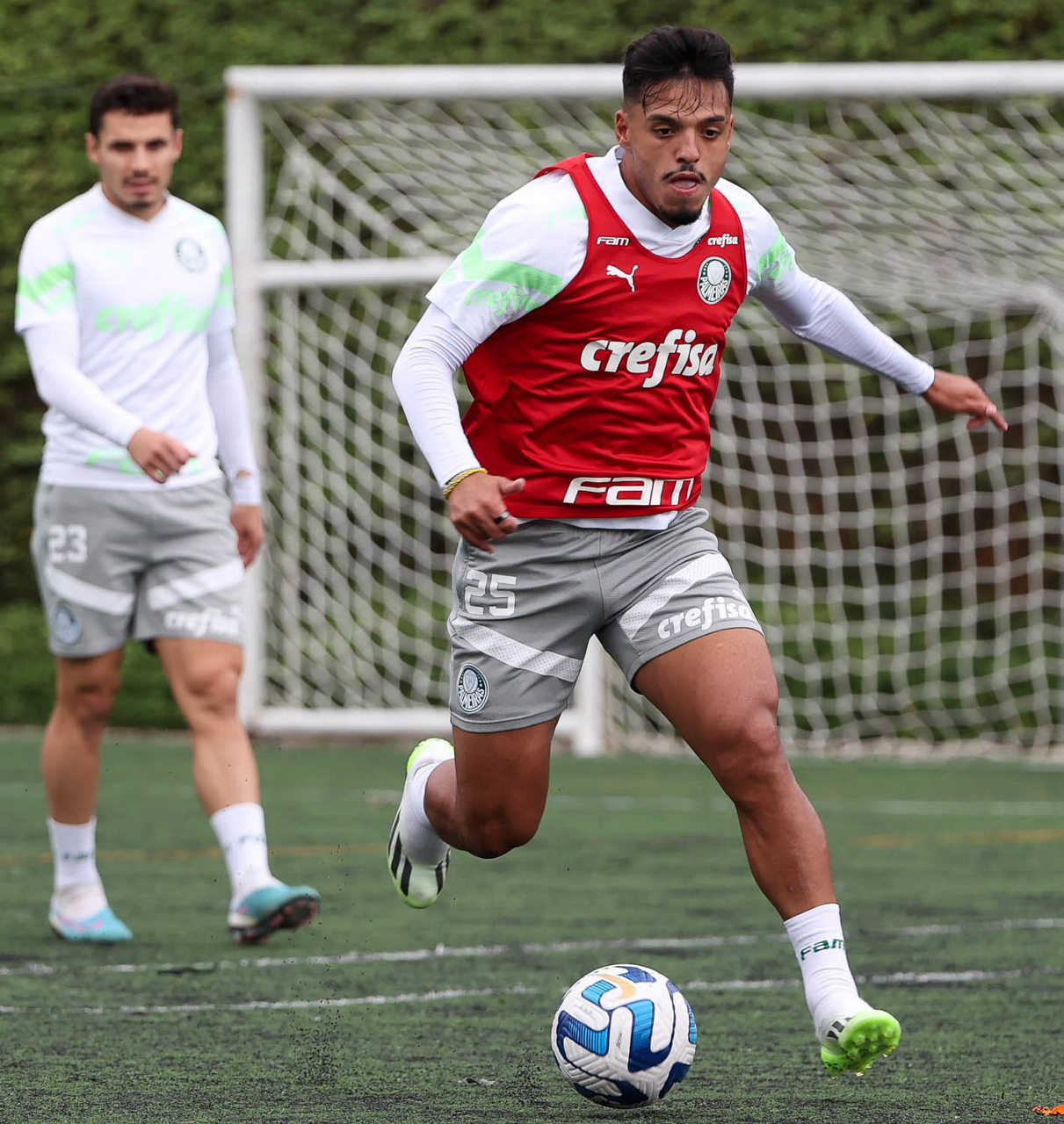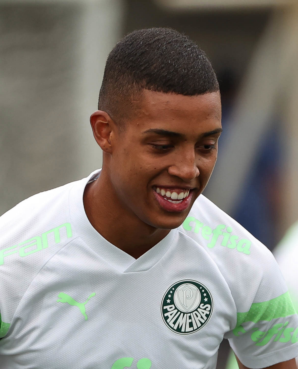 O jogador Gabriel Menino, da SE Palmeiras, durante treinamento, na CT do Sócrates Valência. (Foto: Cesar Greco/Palmeiras/by Canon)