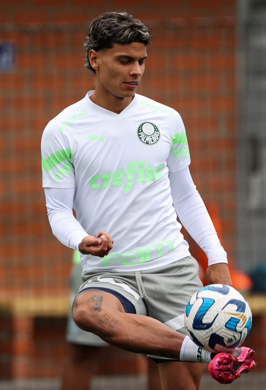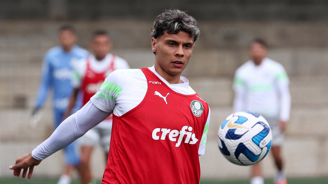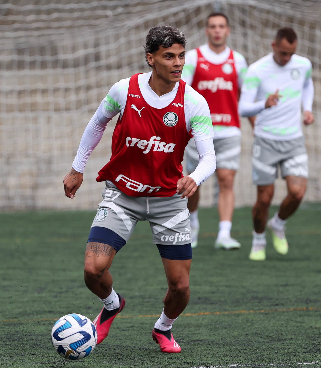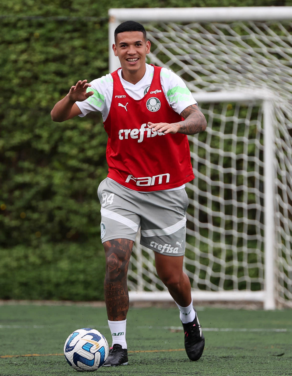 O jogador Richard Ríos, da SE Palmeiras, durante treinamento, na CT do Sócrates Valência. (Foto: Cesar Greco/Palmeiras/by Canon)