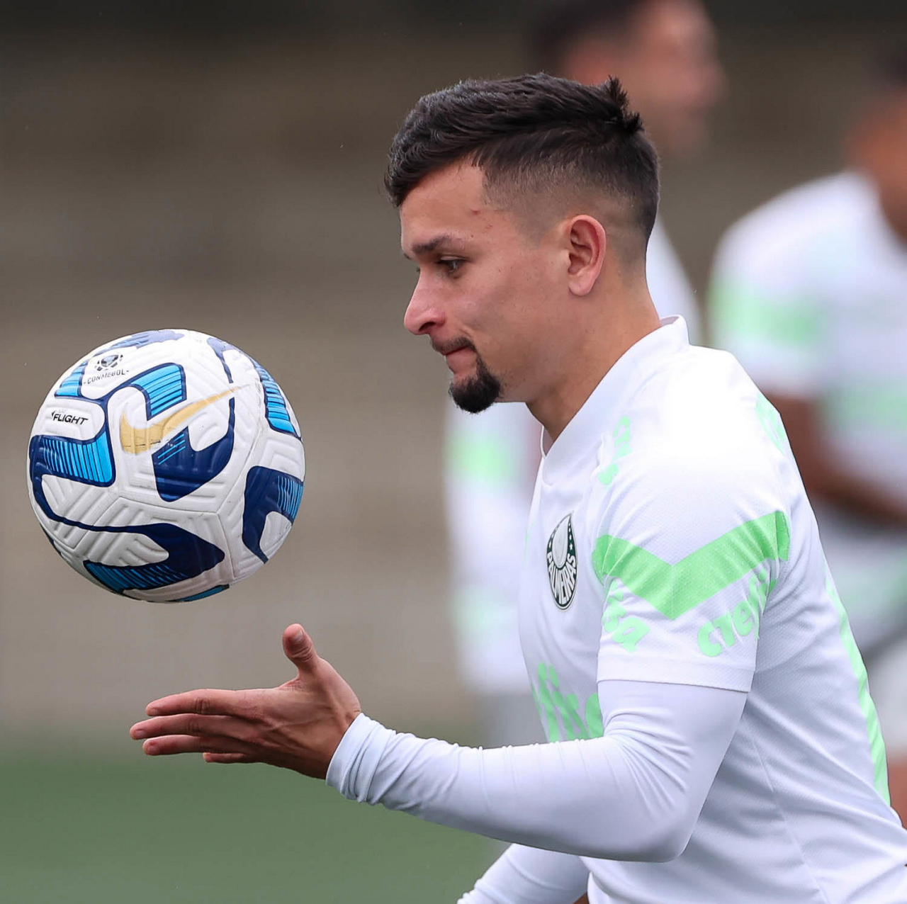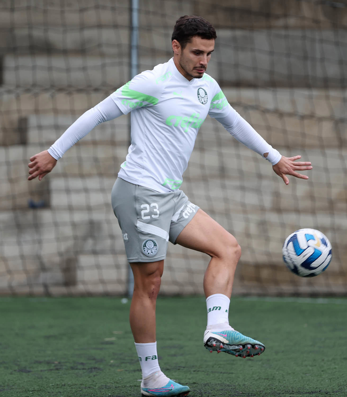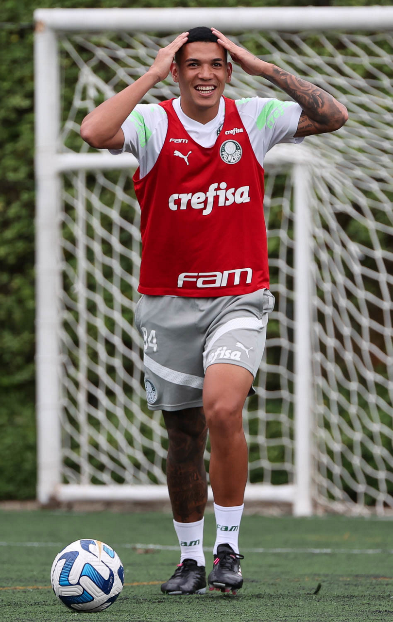 O jogador Richard Ríos, da SE Palmeiras, durante treinamento, na CT do Sócrates Valência. (Foto: Cesar Greco/Palmeiras/by Canon)