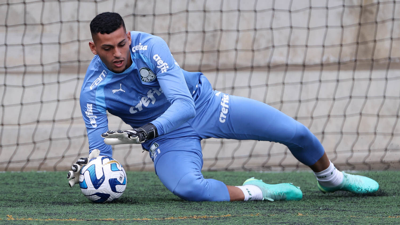 O goleiro Kaique, da SE Palmeiras, durante treinamento, na CT do Sócrates Valência. (Foto: Cesar Greco/Palmeiras/by Canon)