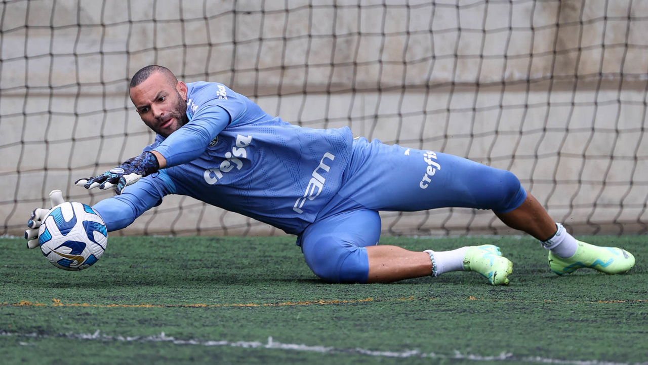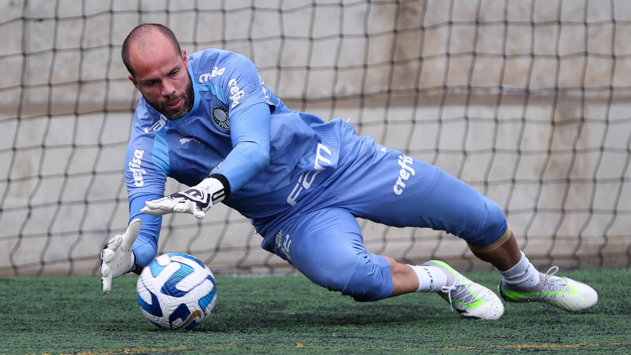 O goleiro Weverton, da SE Palmeiras, durante treinamento, na CT do Sócrates Valência. (Foto: Cesar Greco/Palmeiras/by Canon)