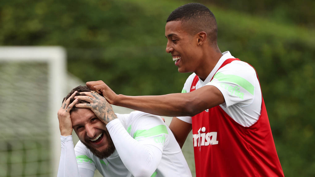 Os jogadores Zé Rafael e Vanderlan (D), da SE Palmeiras, durante treinamento, na CT do Sócrates Valência. (Foto: Cesar Greco/Palmeiras/by Canon)