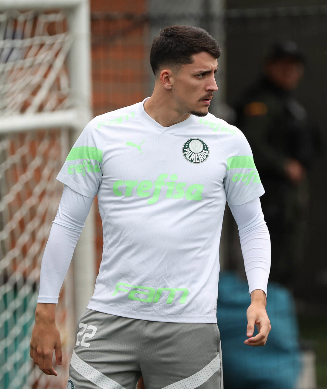 O jogador Joaquín Piquerez, da SE Palmeiras, durante treinamento, na CT do Sócrates Valência. (Foto: Cesar Greco/Palmeiras/by Canon)