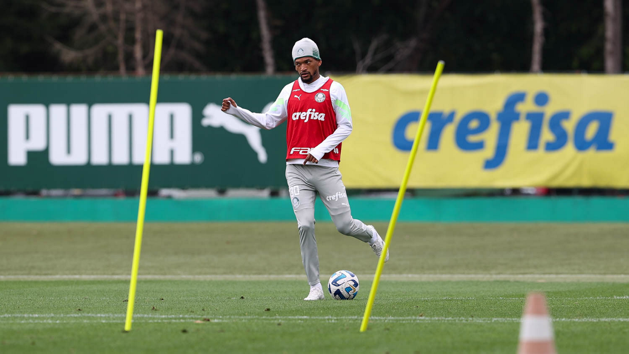 O jogador Fabinho, da SE Palmeiras, durante treinamento, na Academia de Futebol. (Foto: Cesar Greco/Palmeiras/by Canon)