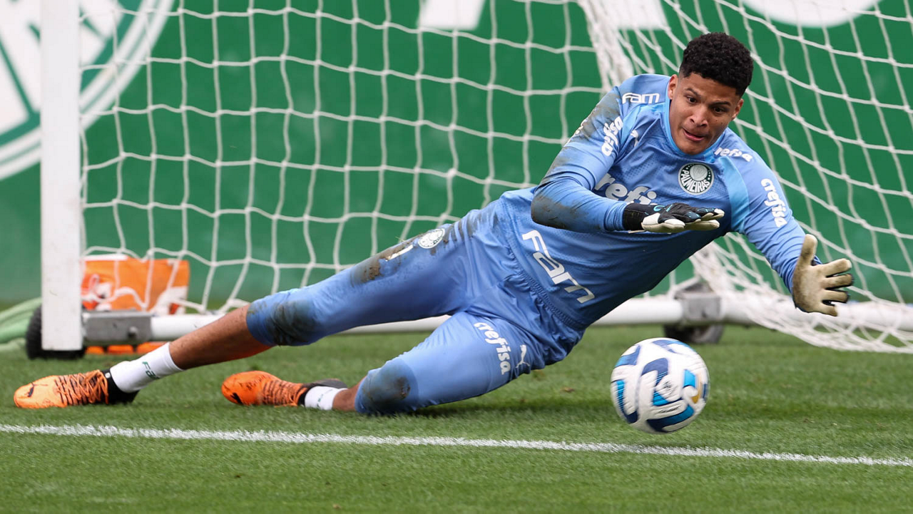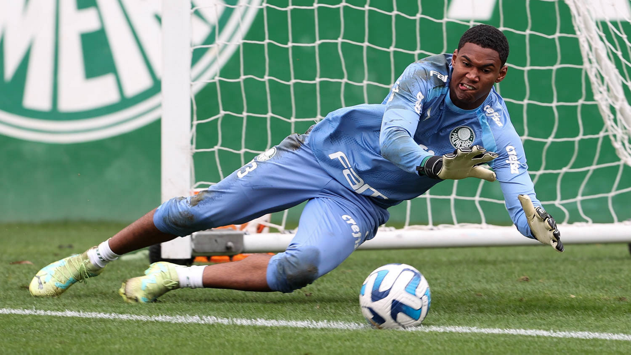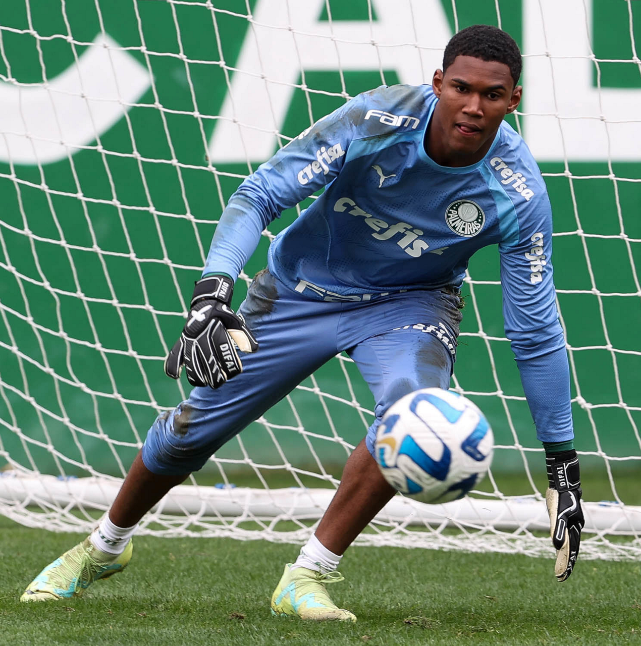 O goleiro Kaique, da SE Palmeiras, durante treinamento, na Academia de Futebol. (Foto: Cesar Greco/Palmeiras/by Canon)