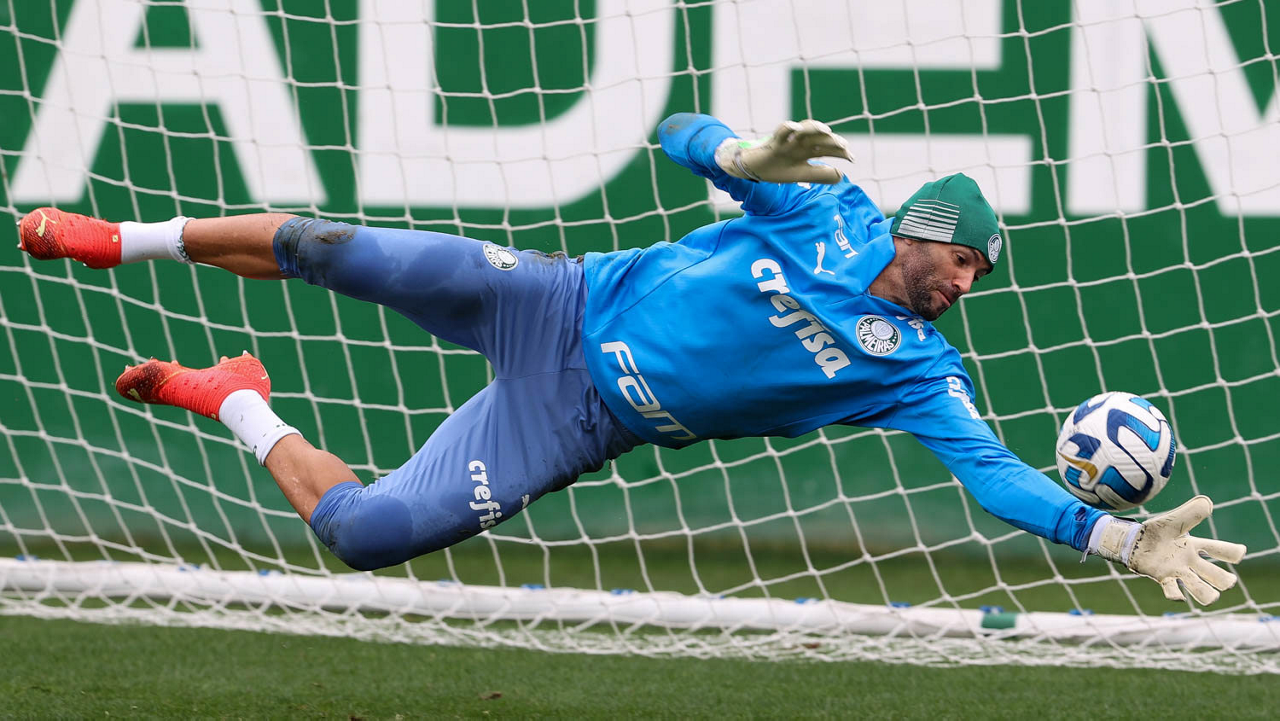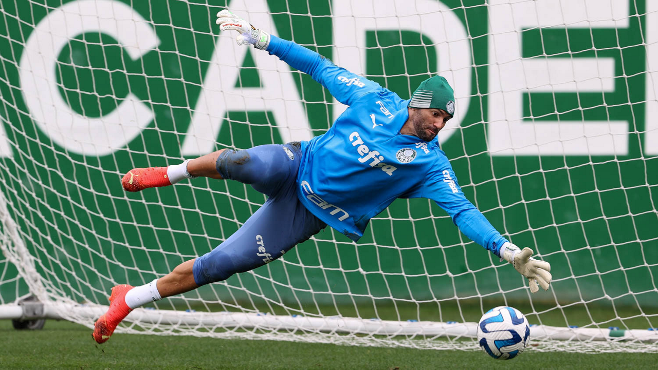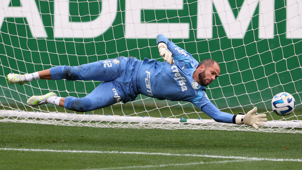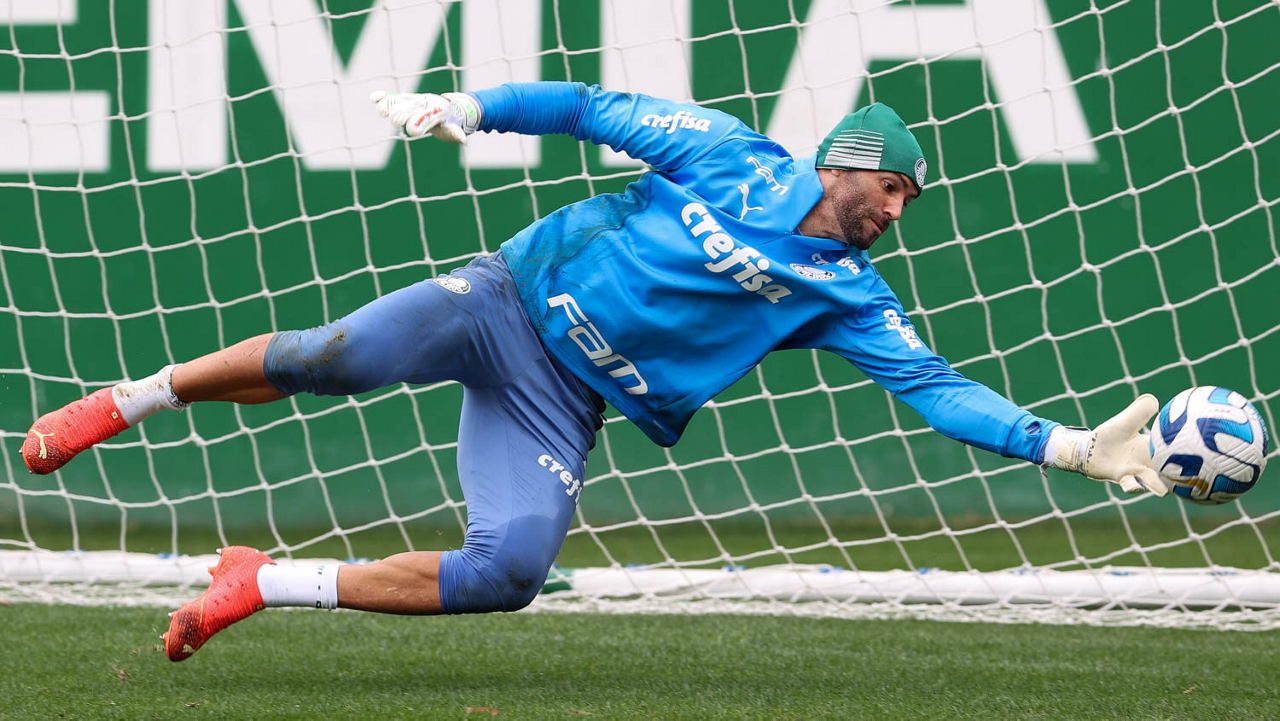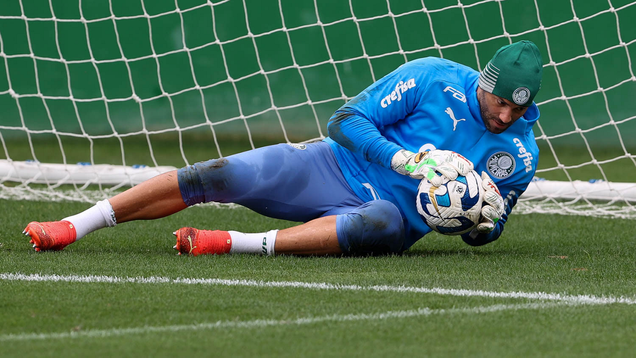 O goleiro Weverton, da SE Palmeiras, durante treinamento, na Academia de Futebol. (Foto: Cesar Greco/Palmeiras/by Canon)