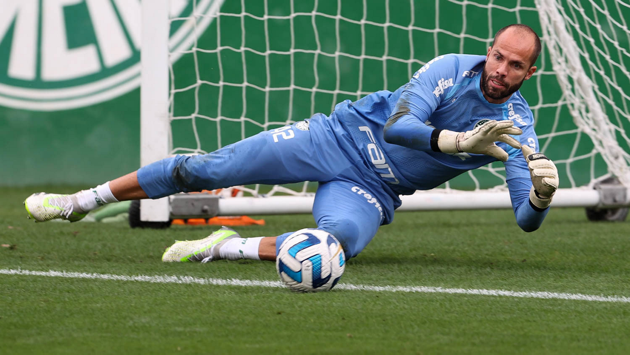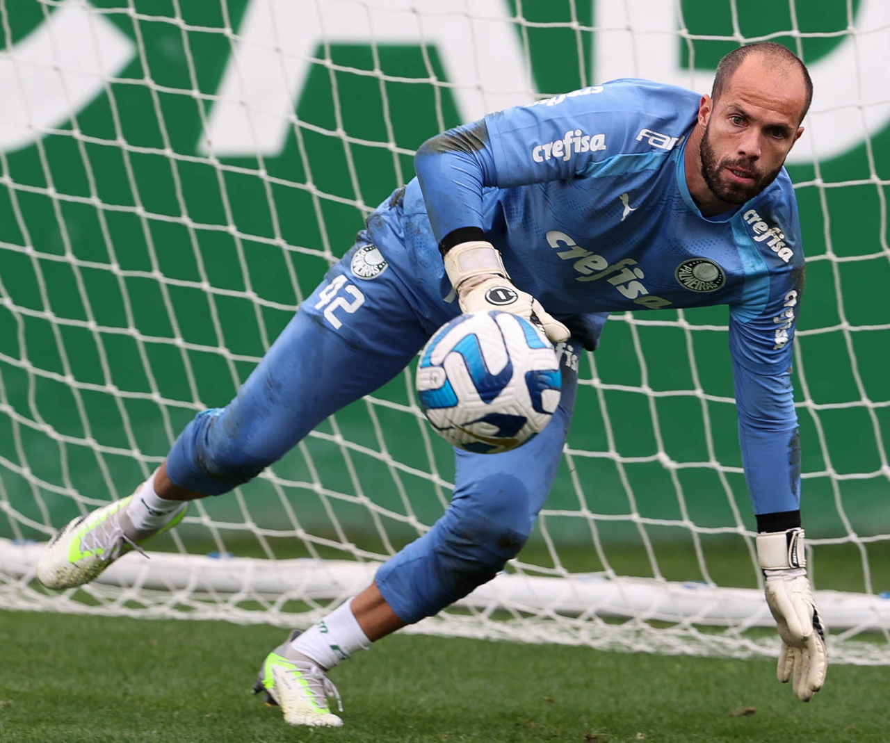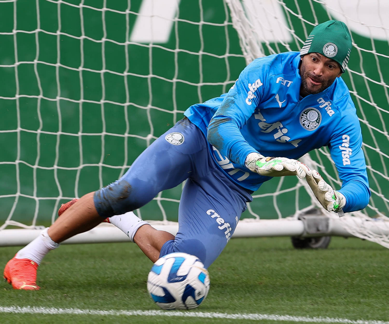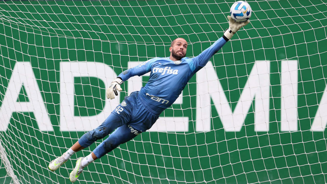 O goleiro Weverton, da SE Palmeiras, durante treinamento, na Academia de Futebol. (Foto: Cesar Greco/Palmeiras/by Canon)