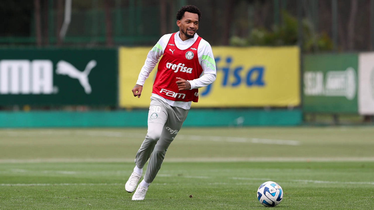 O jogador Jhonatan, da SE Palmeiras, durante treinamento, na Academia de Futebol. (Foto: Cesar Greco/Palmeiras/by Canon)