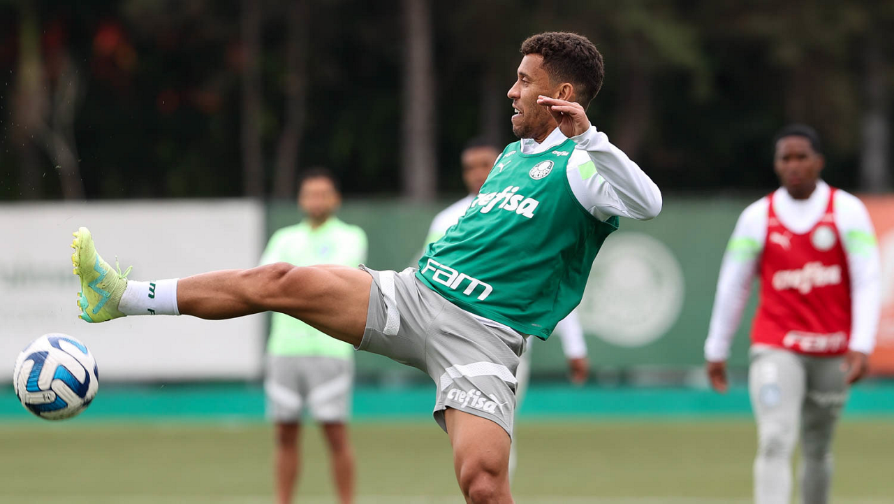 O jogador Marcos Rocha, da SE Palmeiras, durante treinamento, na Academia de Futebol. (Foto: Cesar Greco/Palmeiras/by Canon)