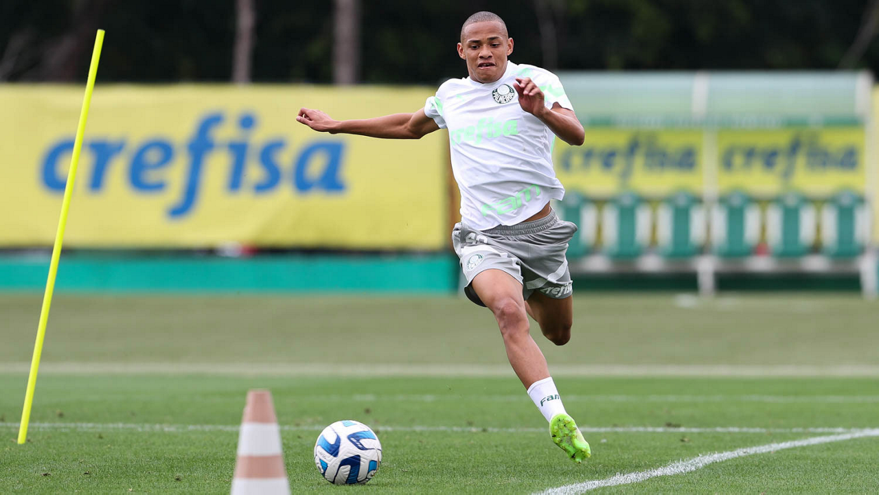 O jogador Kevin, da SE Palmeiras, durante treinamento, na Academia de Futebol. (Foto: Cesar Greco/Palmeiras/by Canon)