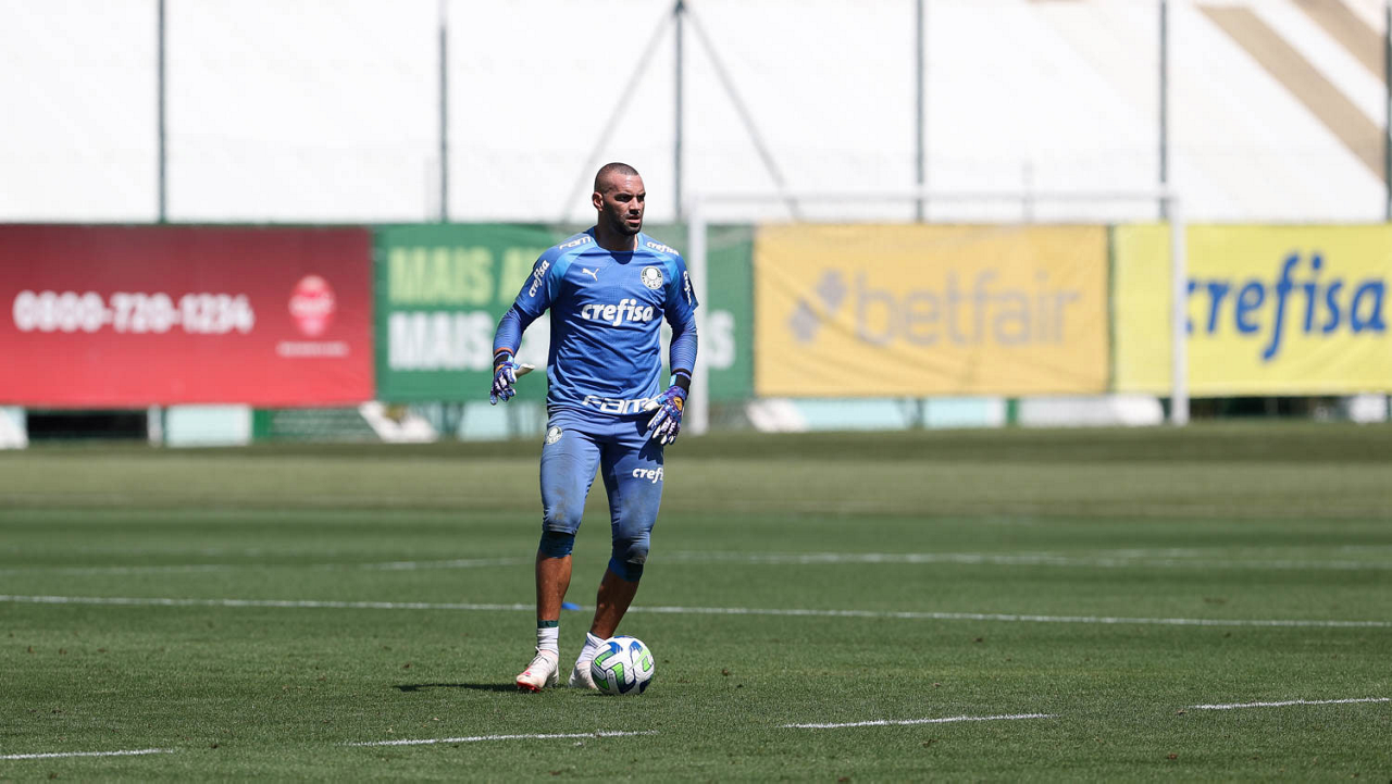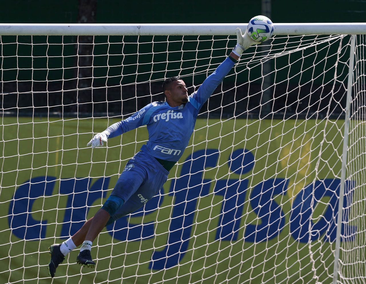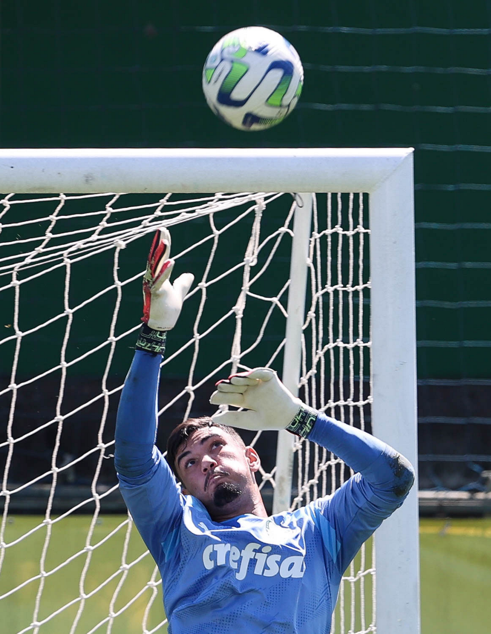 O goleiro Weverton, da SE Palmeiras, durante treinamento, na Academia de Futebol. (Foto: Cesar Greco/Palmeiras/by Canon)