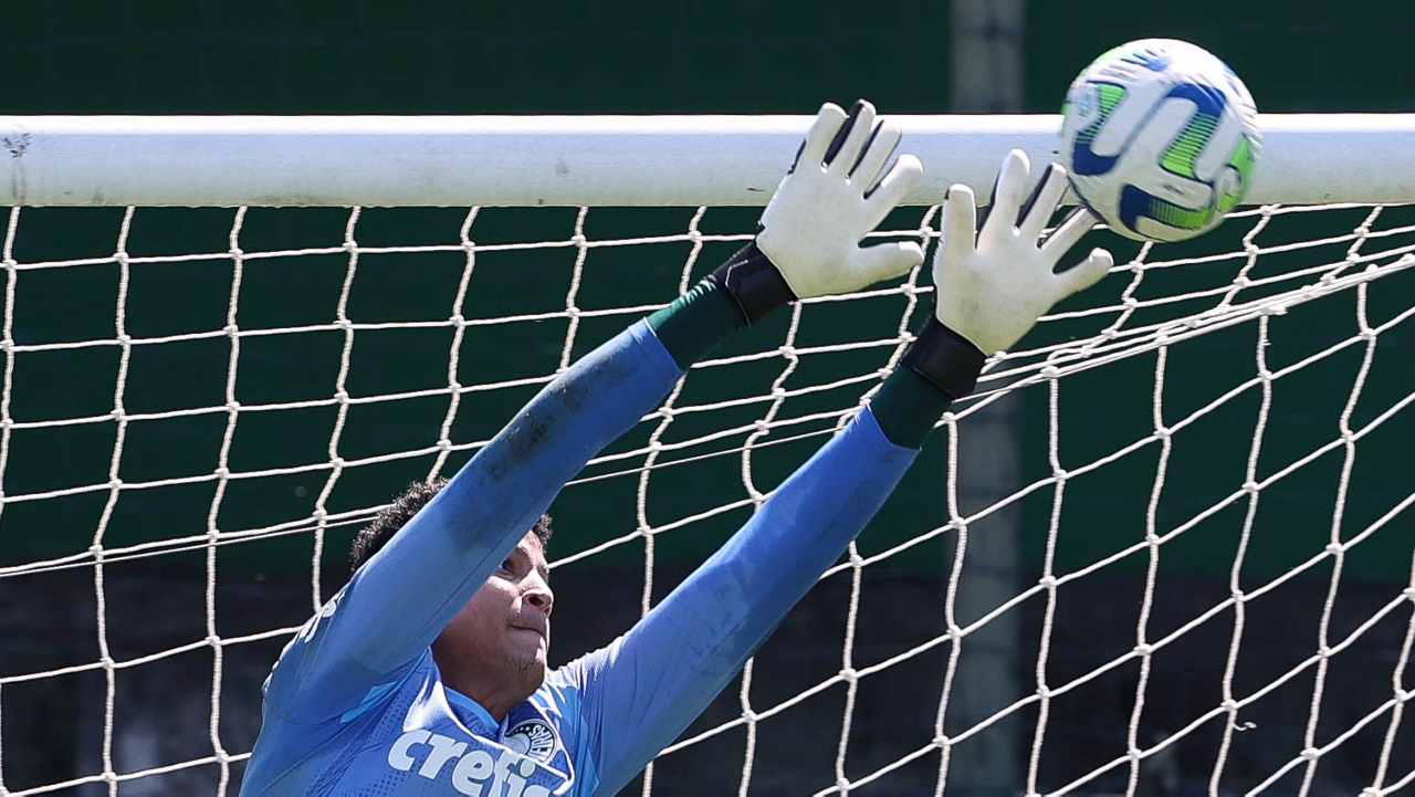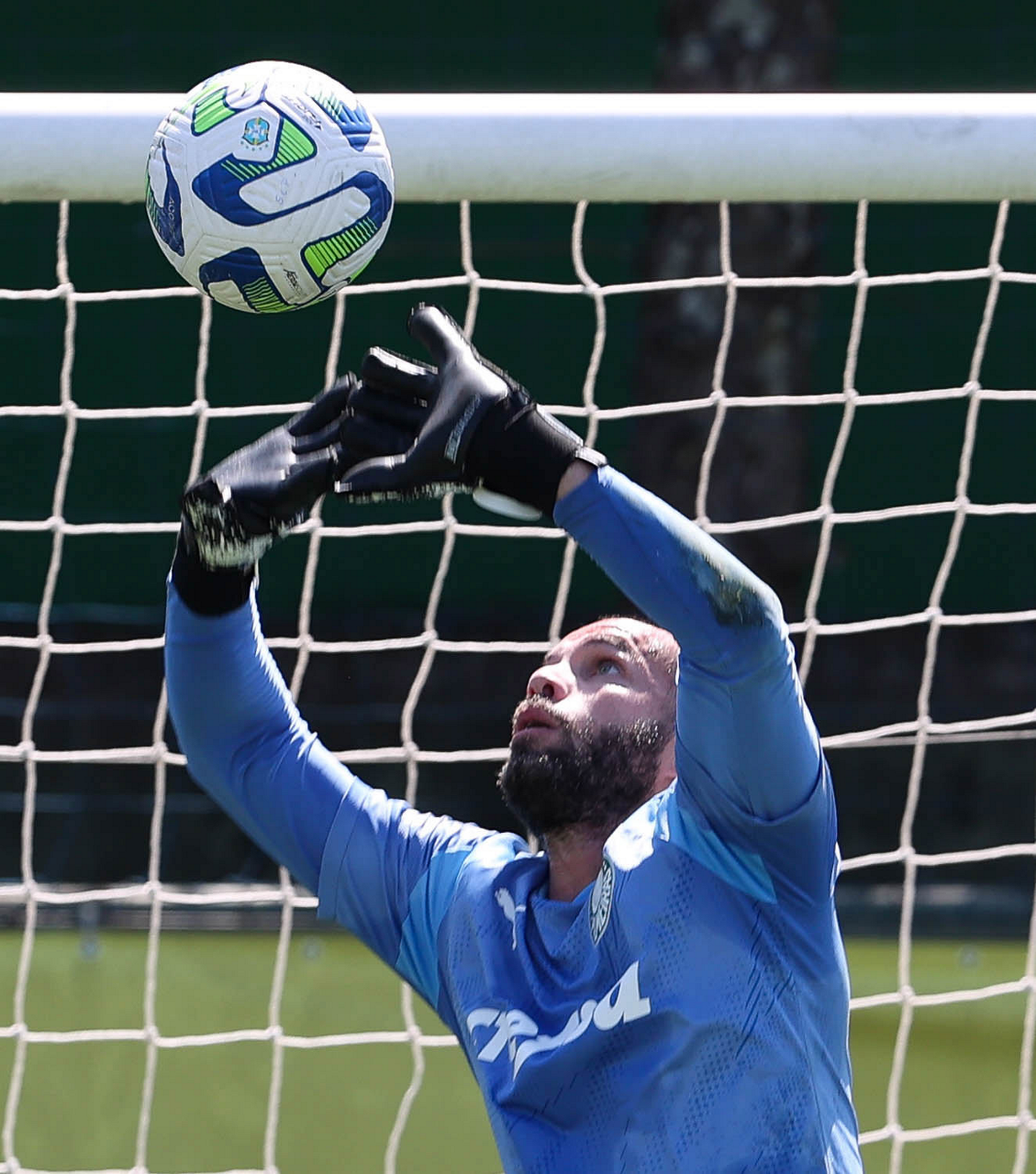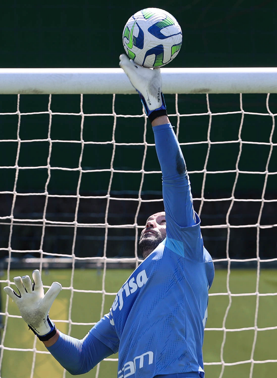O goleiro Weverton, da SE Palmeiras, durante treinamento, na Academia de Futebol. (Foto: Cesar Greco/Palmeiras/by Canon)