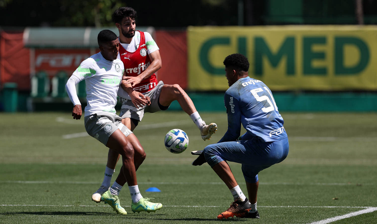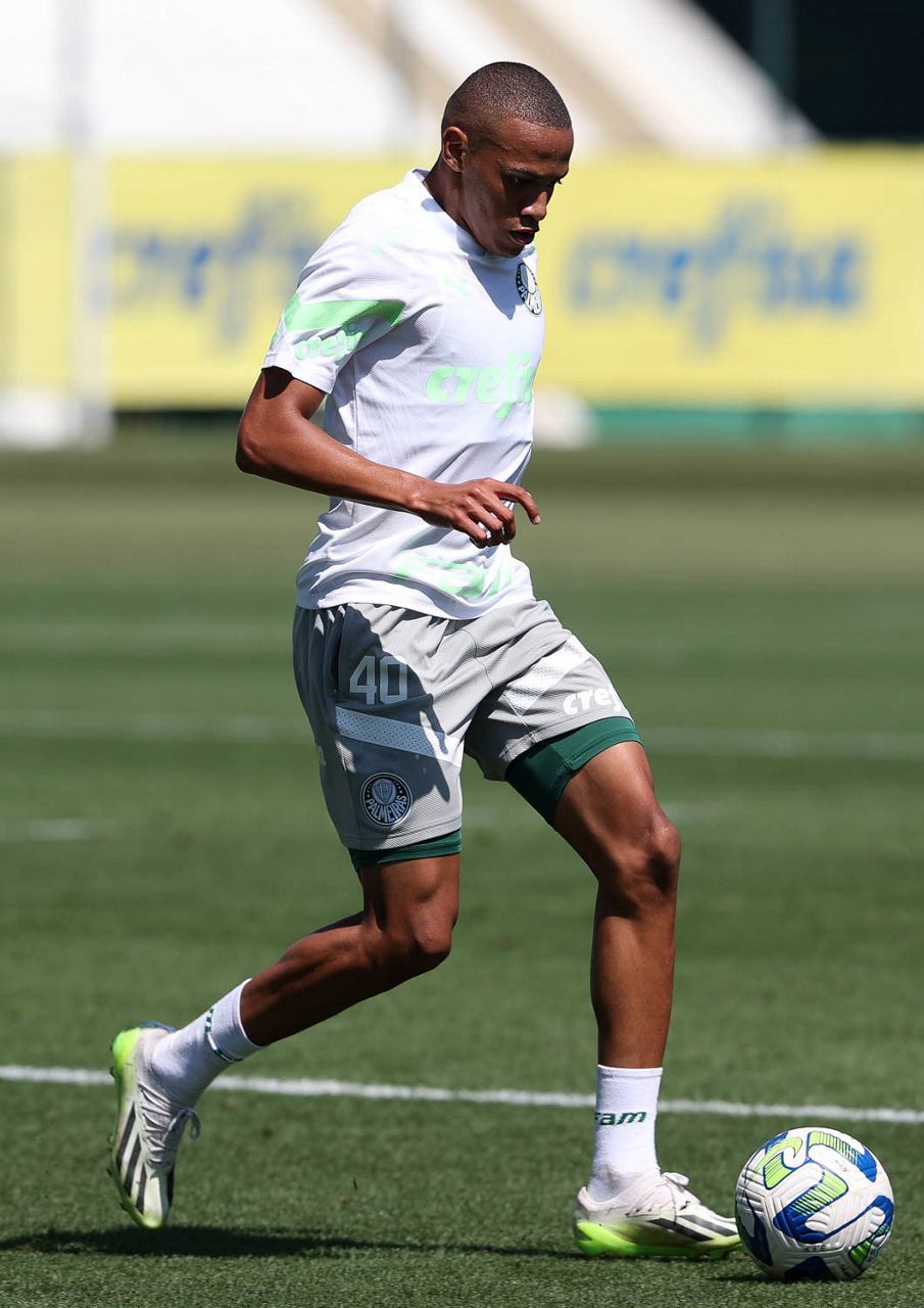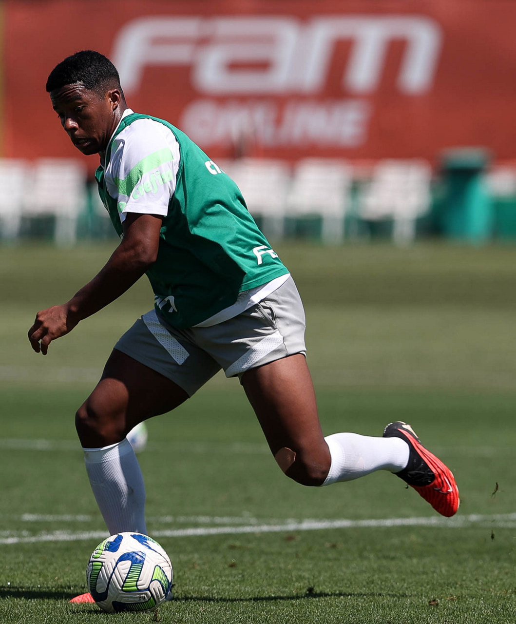 O jogador Endrick, da SE Palmeiras, durante treinamento, na Academia de Futebol. (Foto: Cesar Greco/Palmeiras/by Canon)