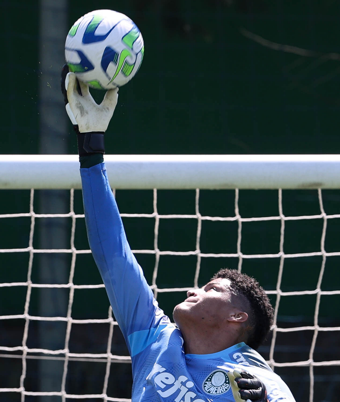 O goleiro Kaique, da SE Palmeiras, durante treinamento, na Academia de Futebol. (Foto: Cesar Greco/Palmeiras/by Canon)