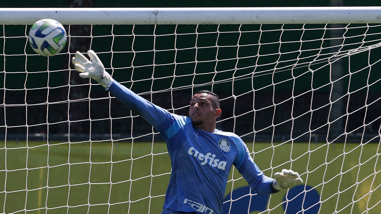 O goleiro Mateus, da SE Palmeiras, durante treinamento, na Academia de Futebol. (Foto: Cesar Greco/Palmeiras/by Canon)
