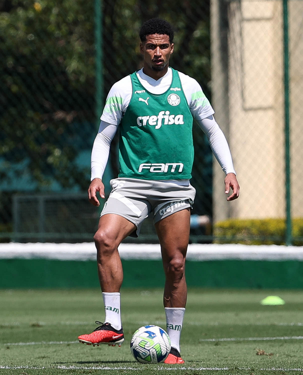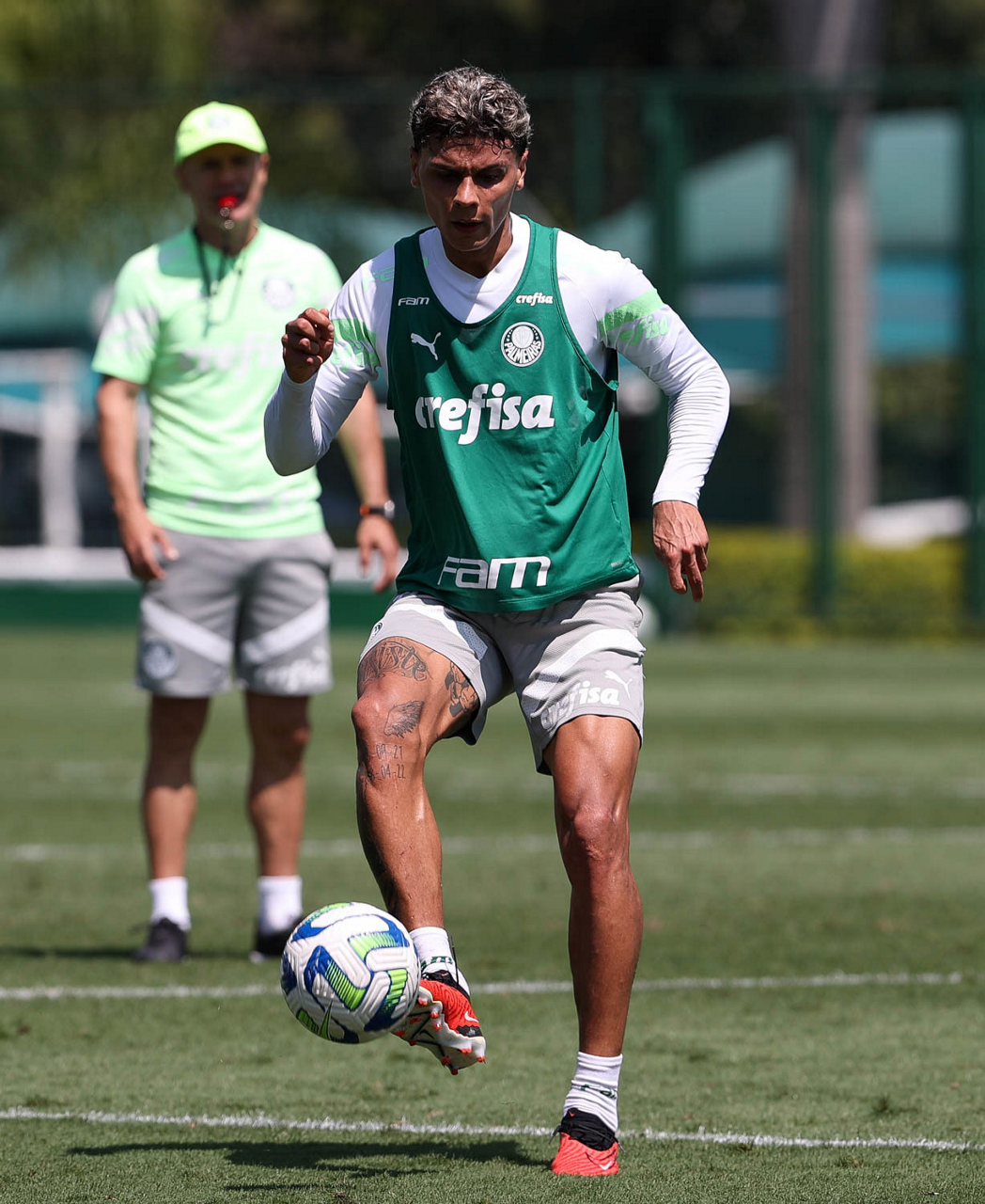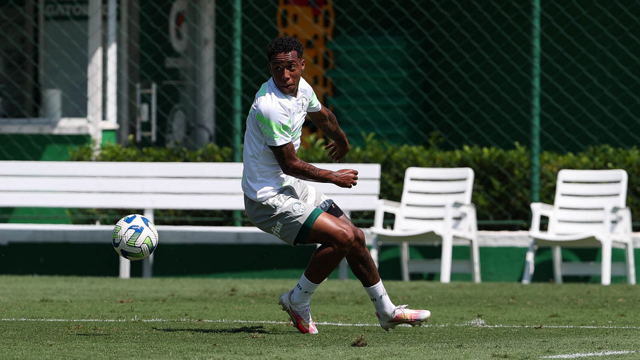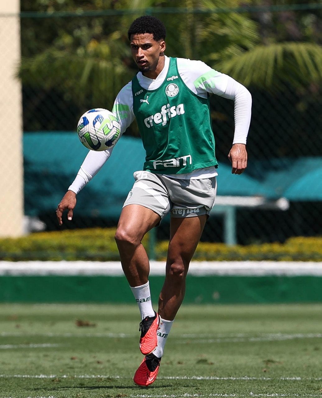 O jogador Richard Ríos, da SE Palmeiras, durante treinamento, na Academia de Futebol. (Foto: Cesar Greco/Palmeiras/by Canon)