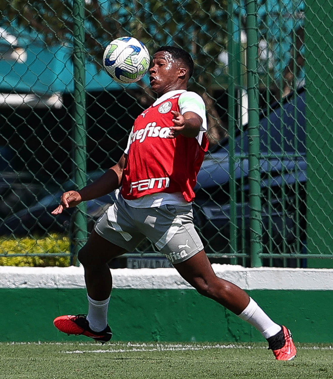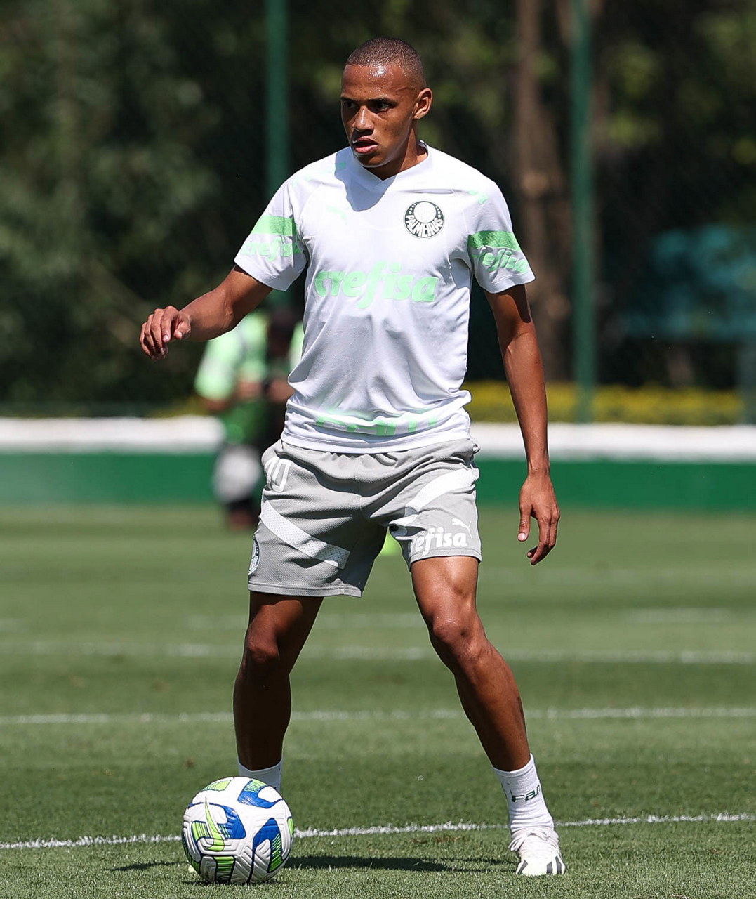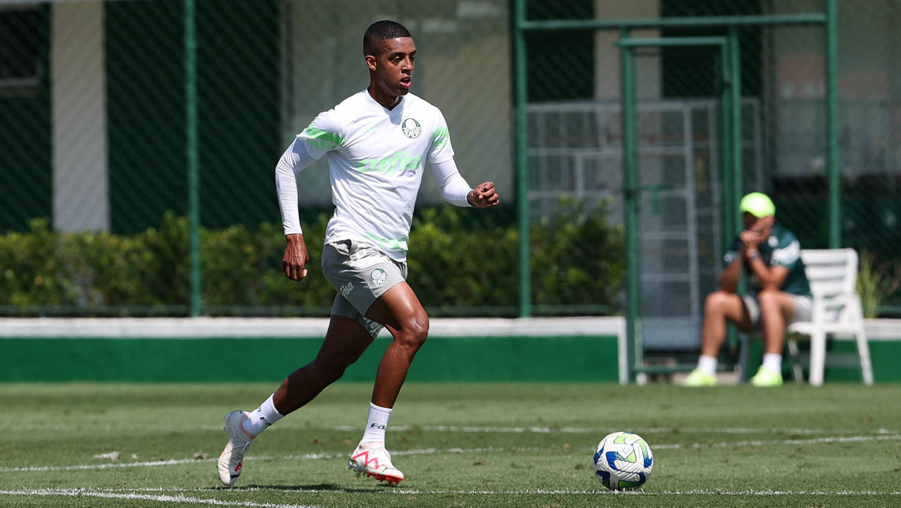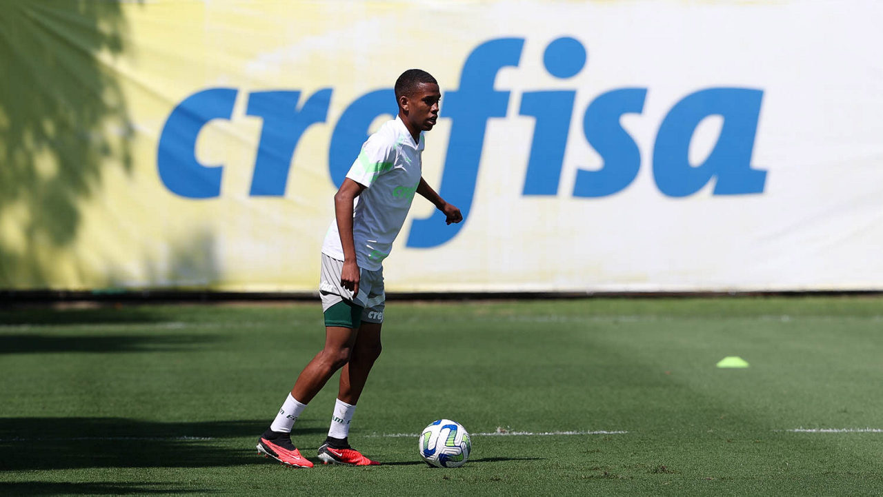 O jogador Endrick, da SE Palmeiras, durante treinamento, na Academia de Futebol. (Foto: Cesar Greco/Palmeiras/by Canon)