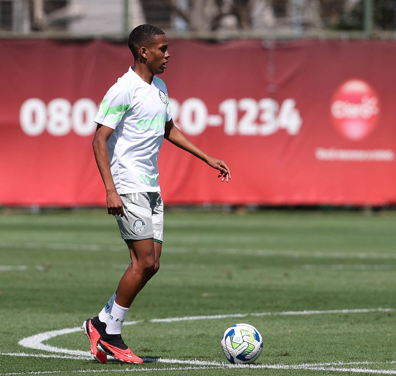 O jogador Estêvão, da SE Palmeiras, durante treinamento, na Academia de Futebol. (Foto: Cesar Greco/Palmeiras/by Canon)