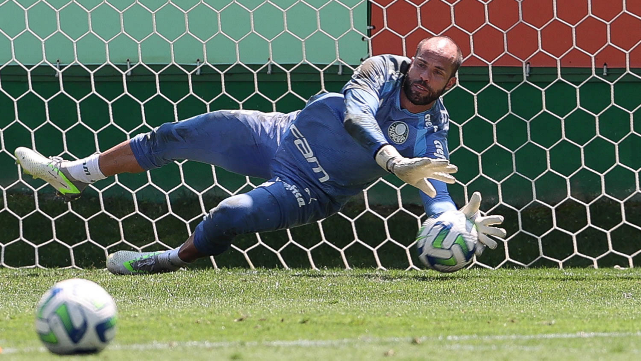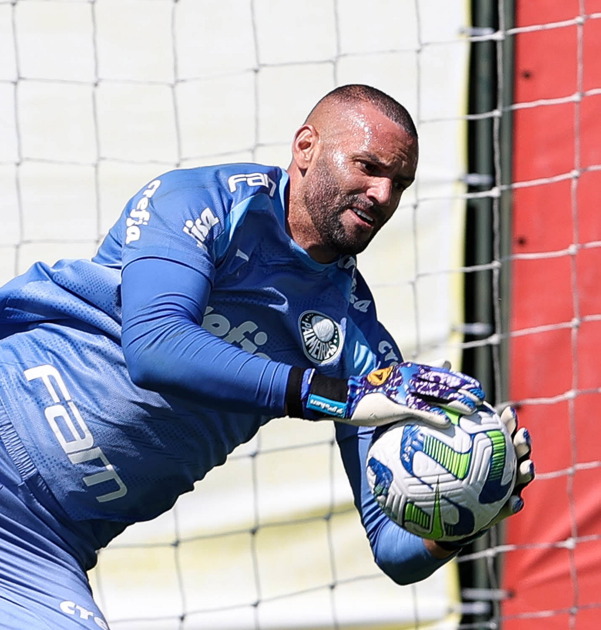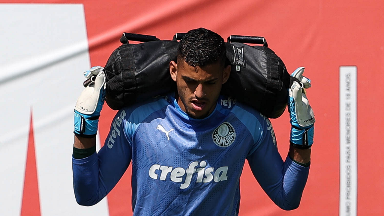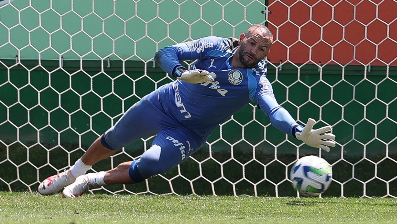 O goleiro Weverton, da SE Palmeiras, durante treinamento, na Academia de Futebol. (Foto: Cesar Greco/Palmeiras/by Canon)