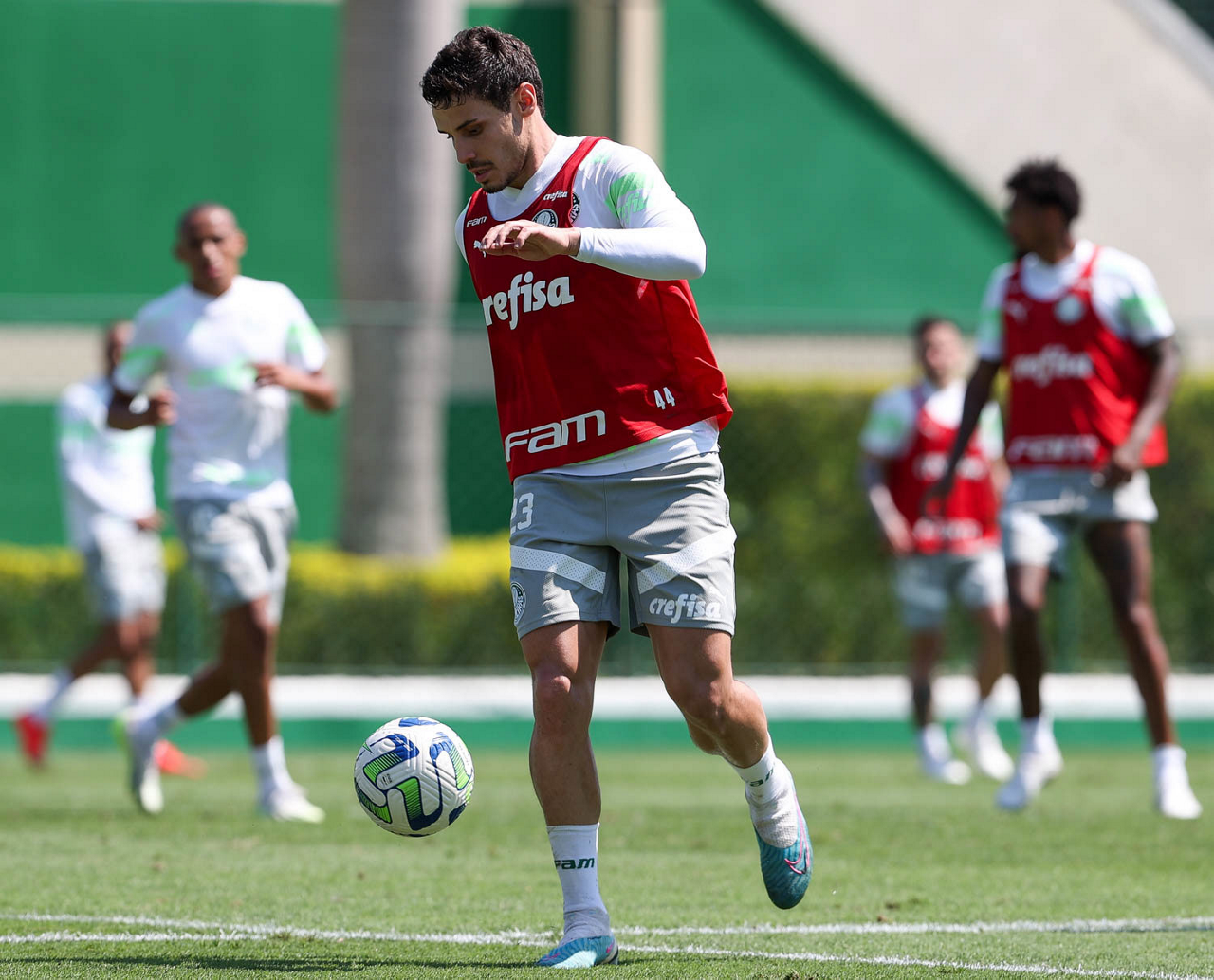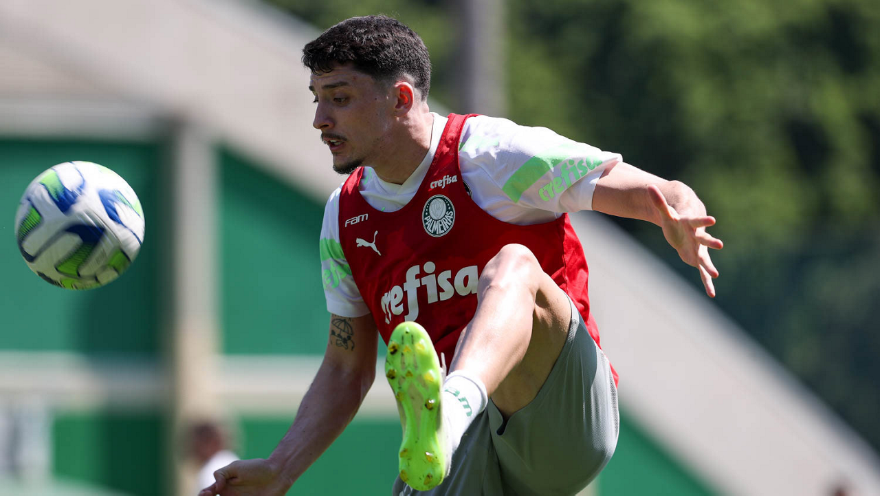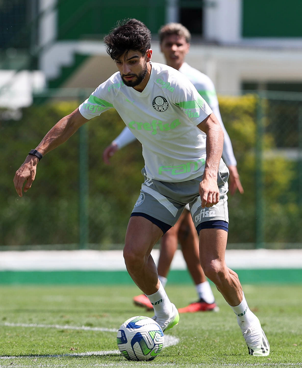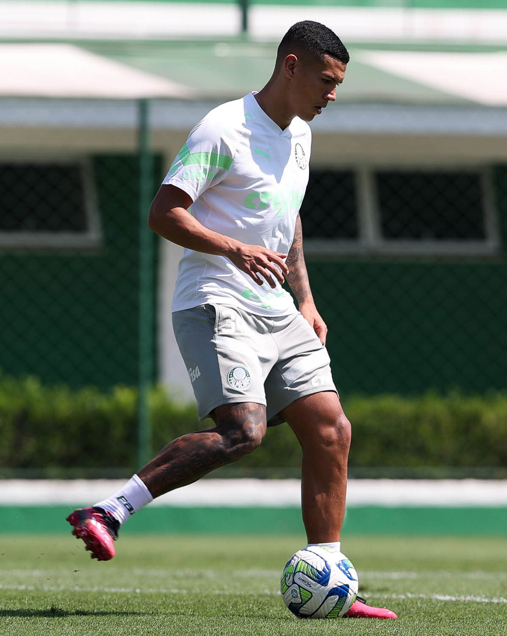 O jogador Richard Ríos, da SE Palmeiras, durante treinamento, na Academia de Futebol. (Foto: Cesar Greco/Palmeiras/by Canon)