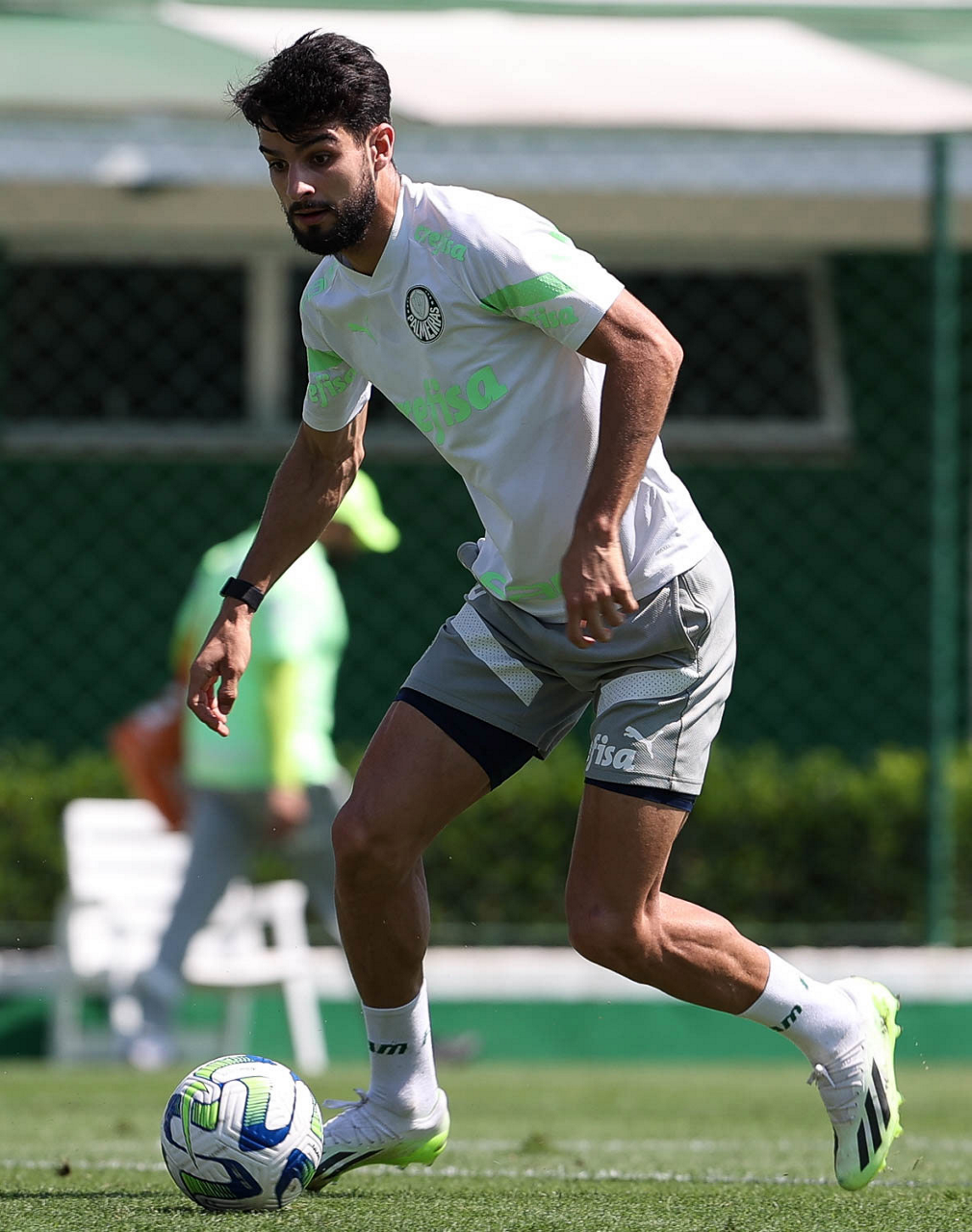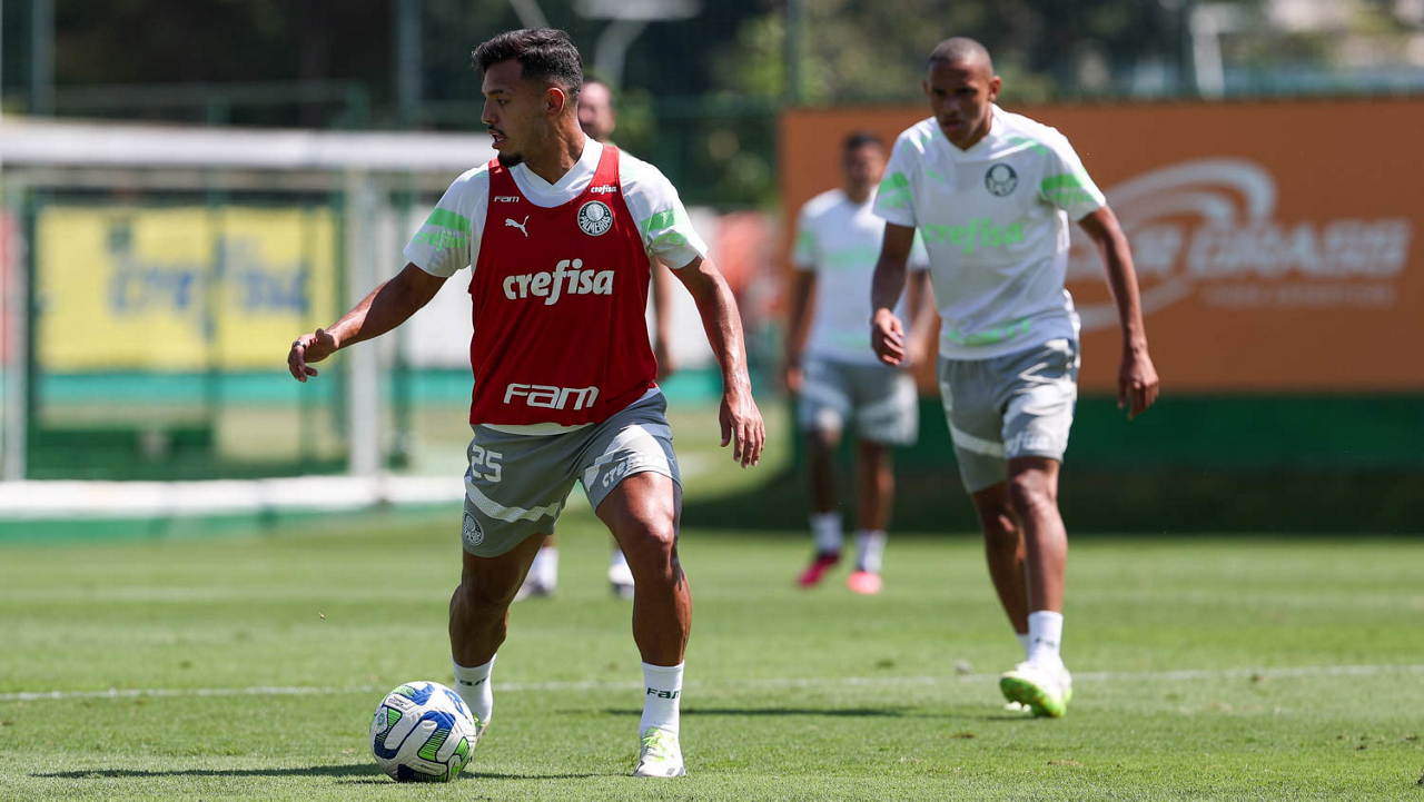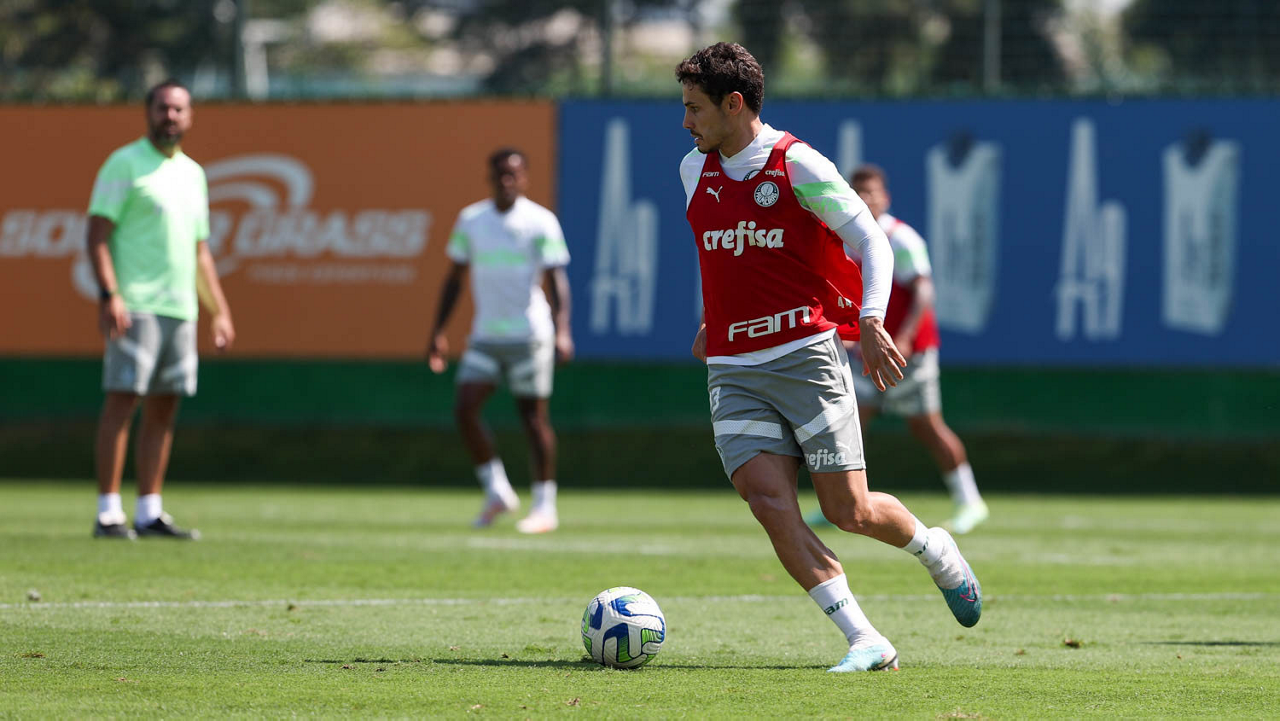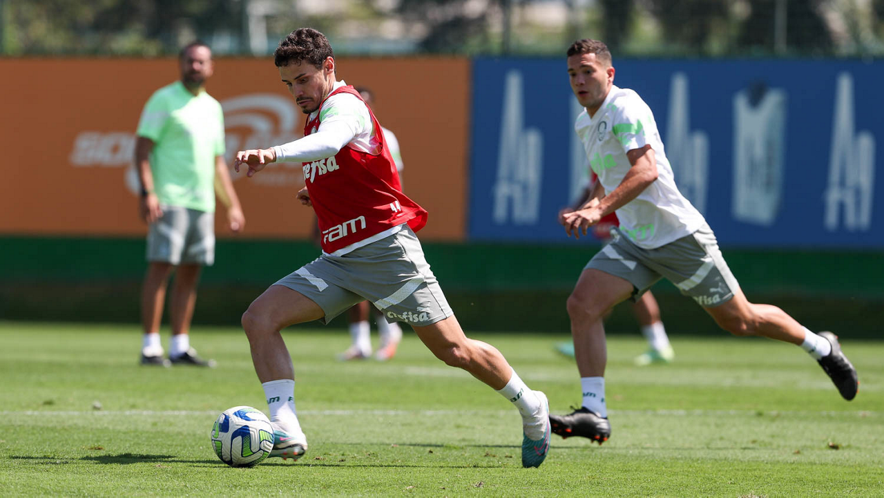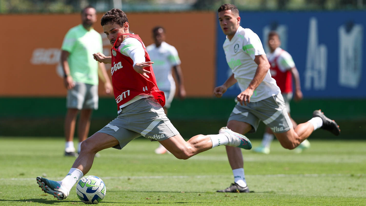 O jogador Richard Ríos, da SE Palmeiras, durante treinamento, na Academia de Futebol. (Foto: Cesar Greco/Palmeiras/by Canon)