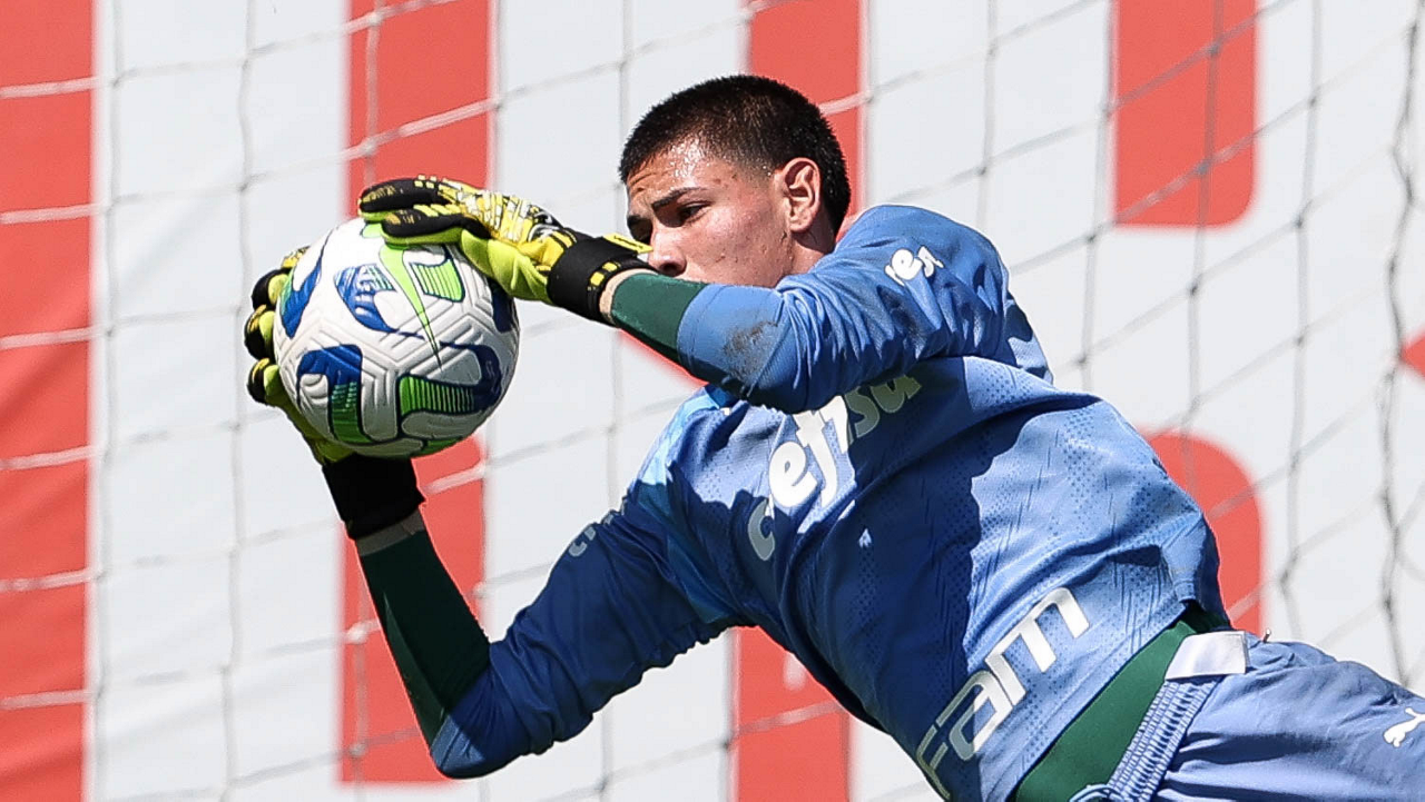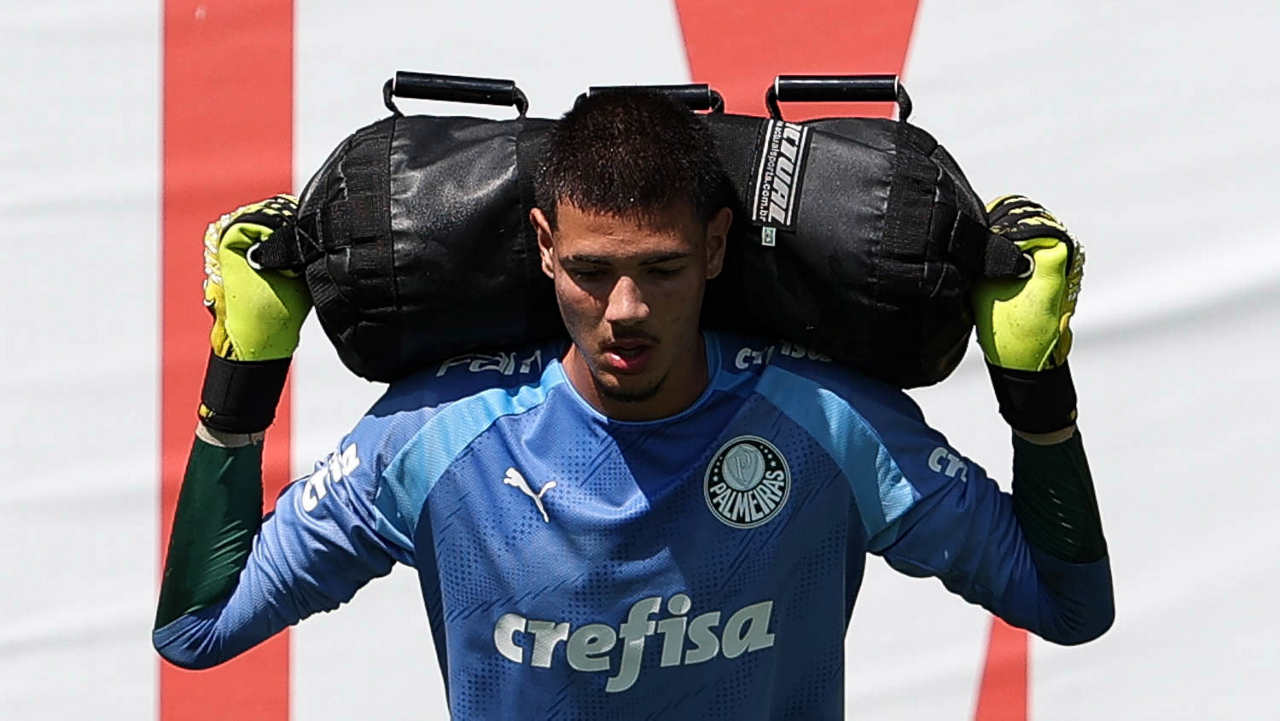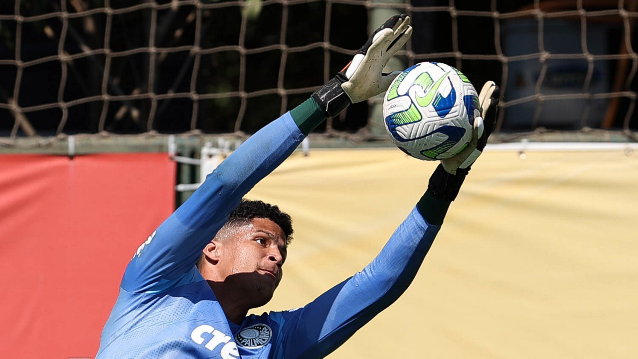 O goleiro Kaique, da SE Palmeiras, durante treinamento, na Academia de Futebol. (Foto: Cesar Greco/Palmeiras/by Canon)