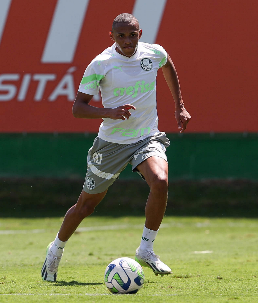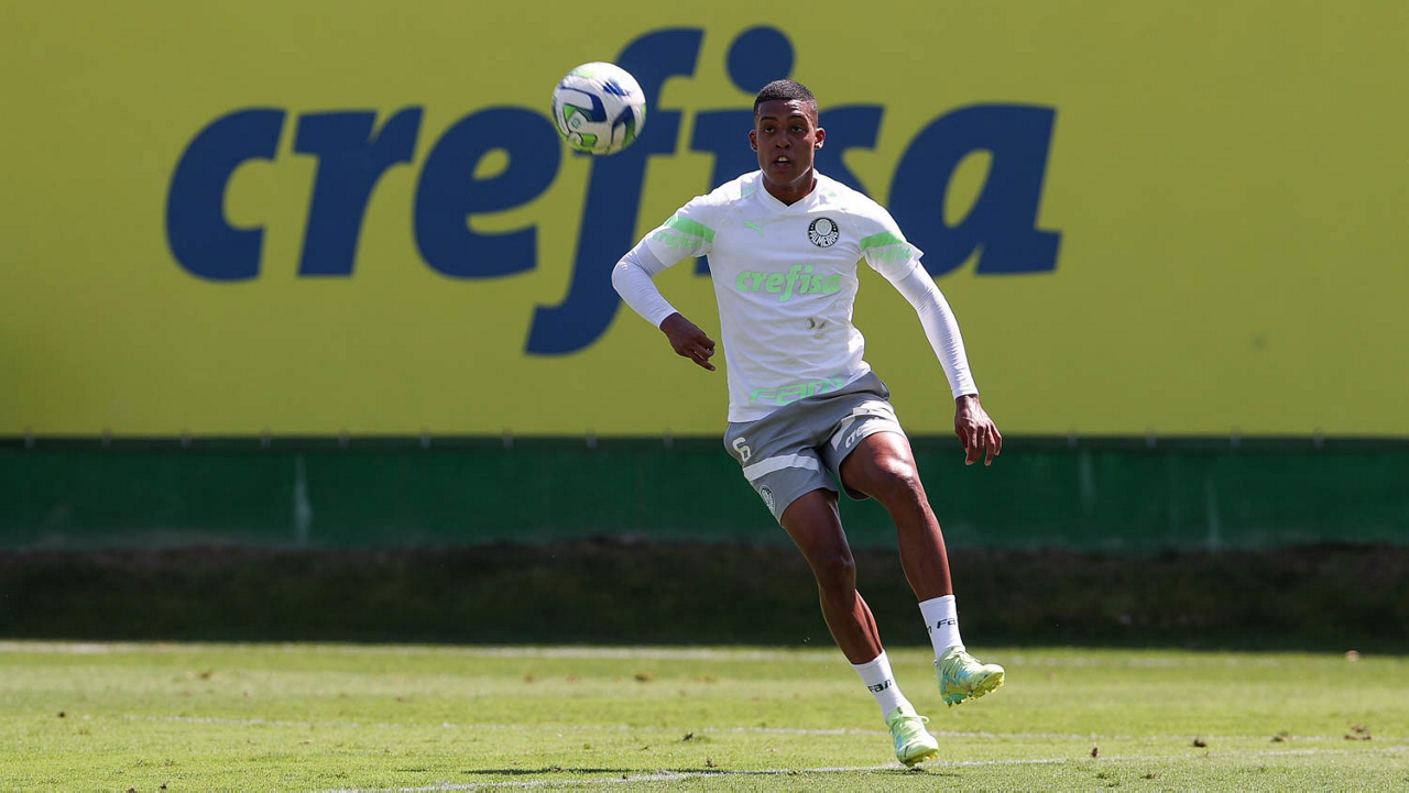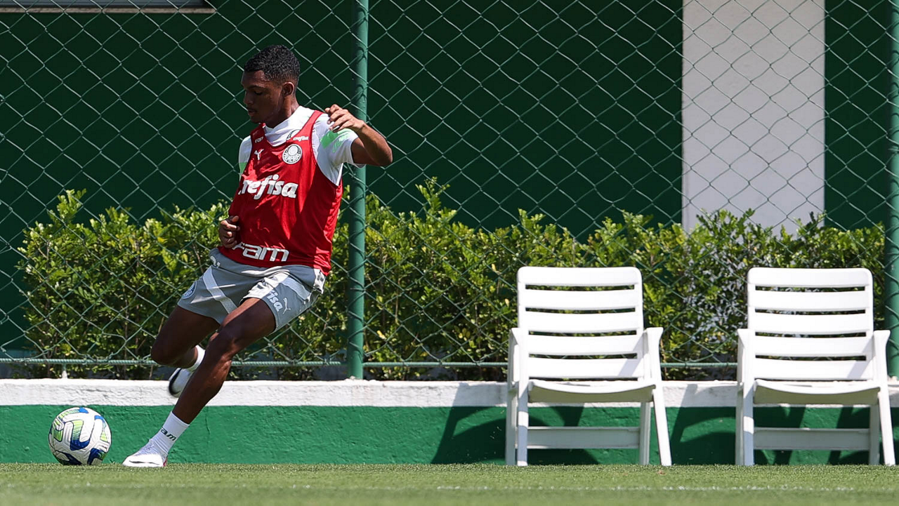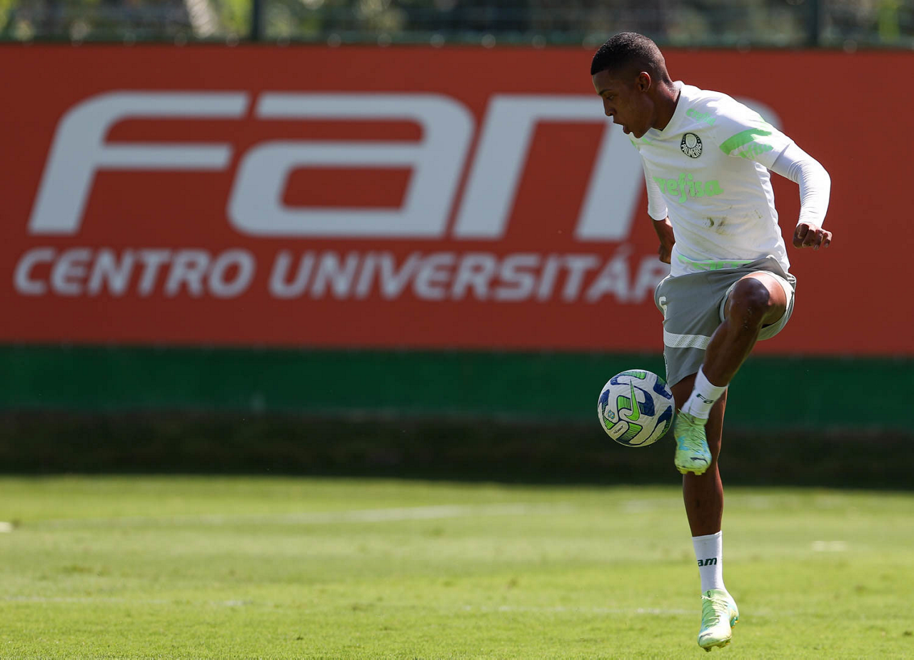 O jogador Gabriel Menino, da SE Palmeiras, durante treinamento, na Academia de Futebol. (Foto: Cesar Greco/Palmeiras/by Canon)