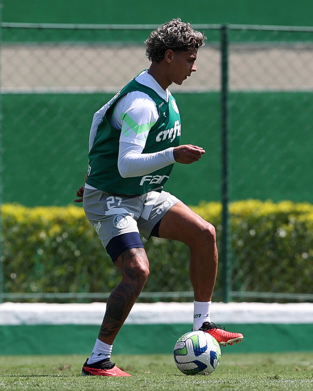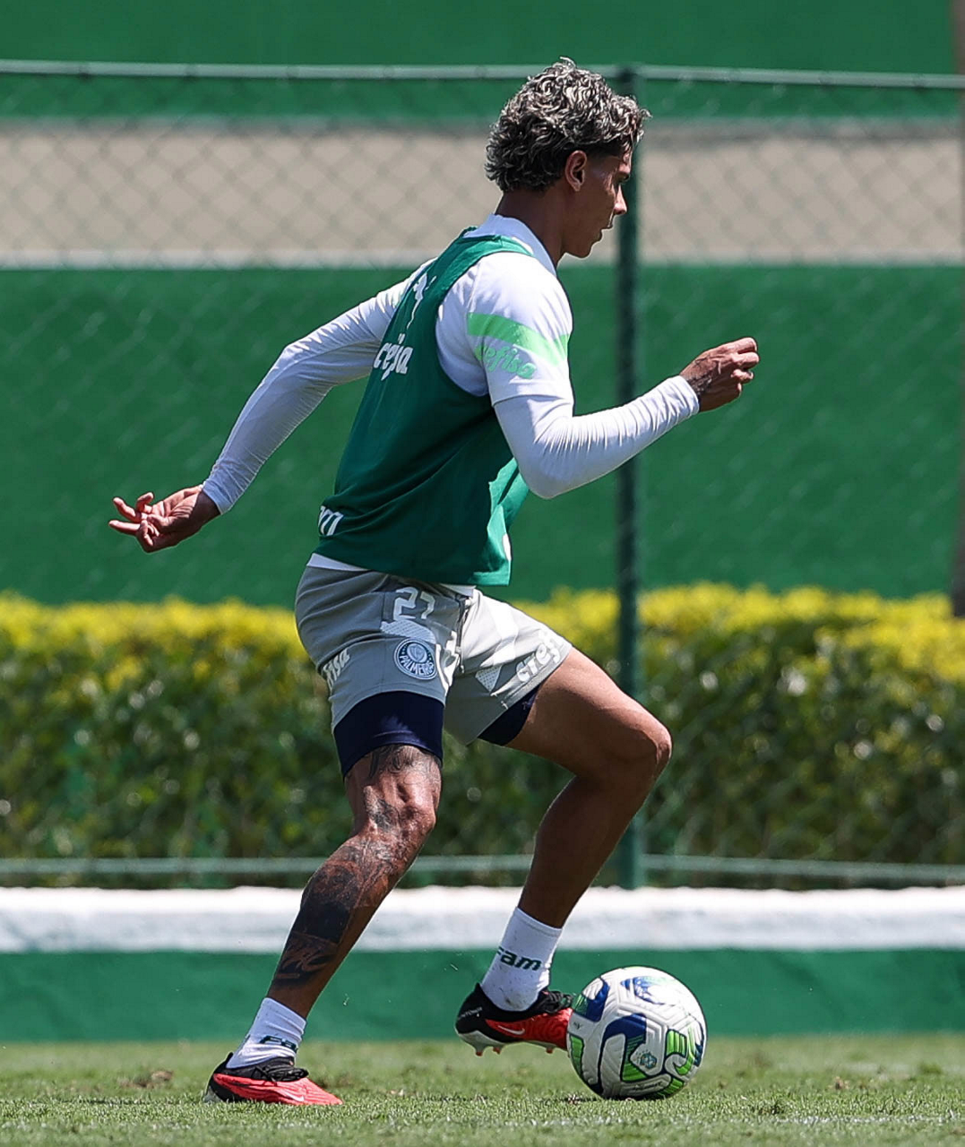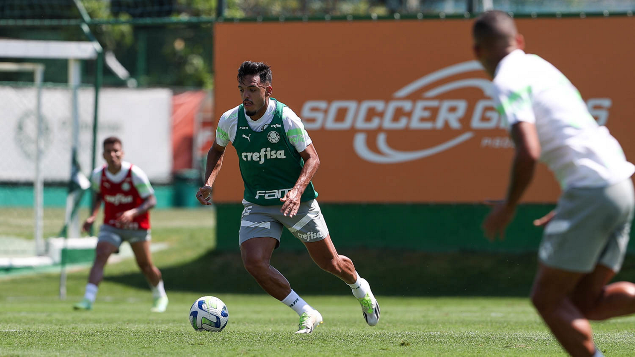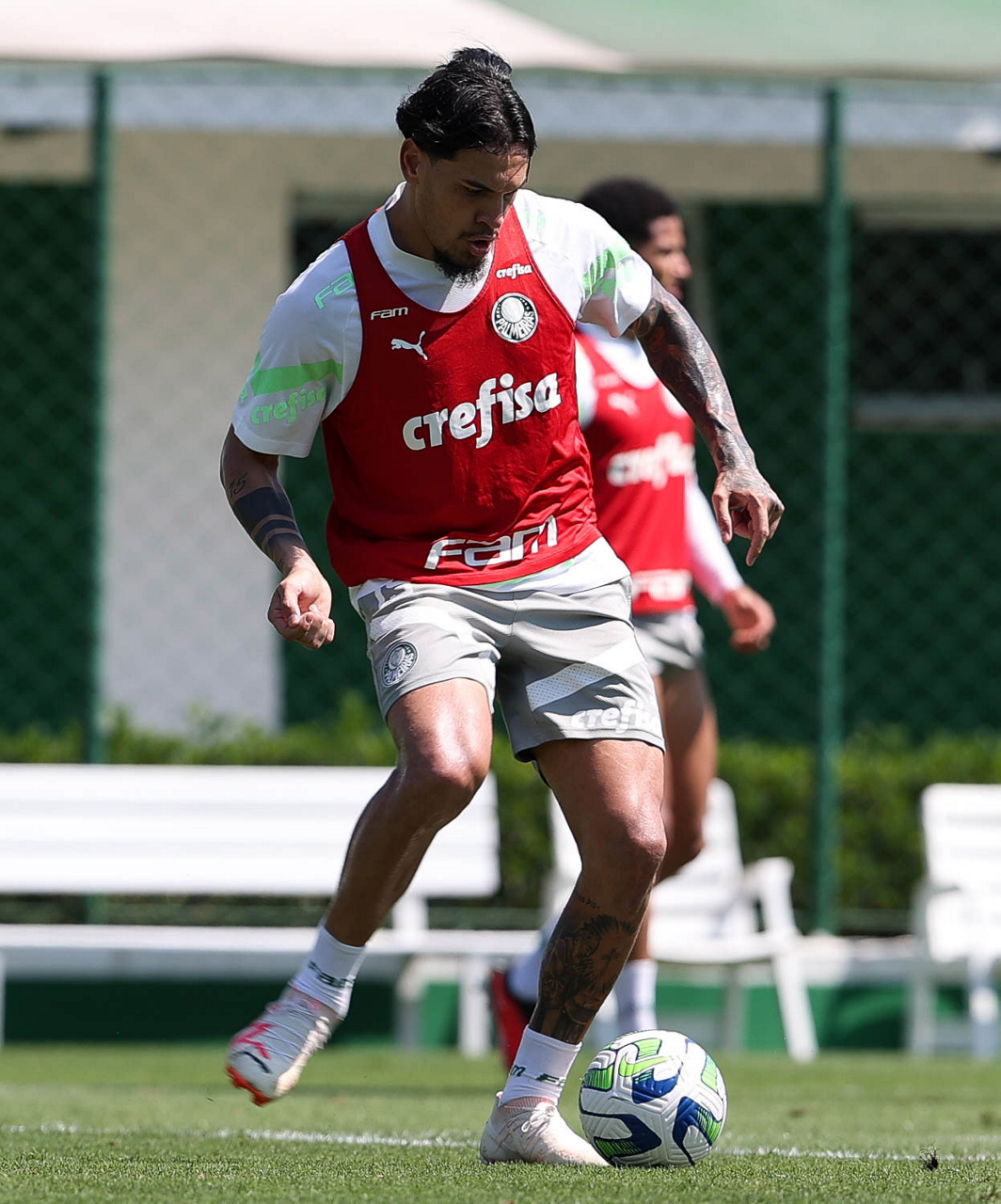 O jogador Gabriel Menino, da SE Palmeiras, durante treinamento, na Academia de Futebol. (Foto: Cesar Greco/Palmeiras/by Canon)