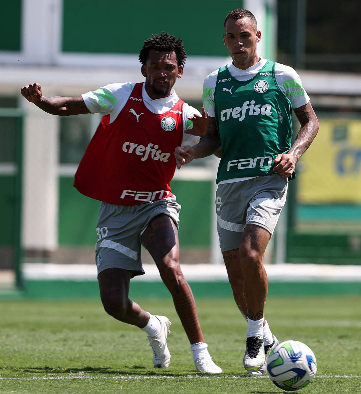 Os jogadores Luan e Gabriel Menino (D), da SE Palmeiras, durante treinamento, na Academia de Futebol. (Foto: Cesar Greco/Palmeiras/by Canon)
