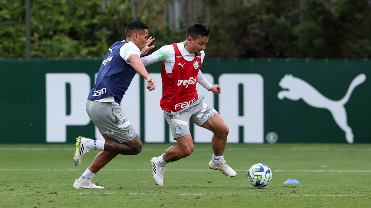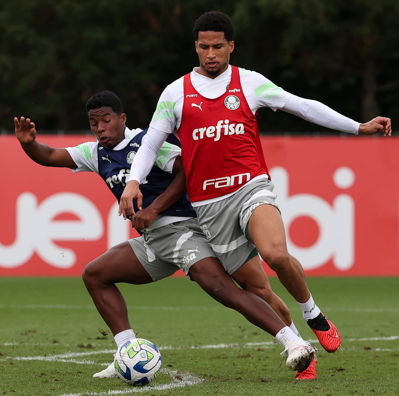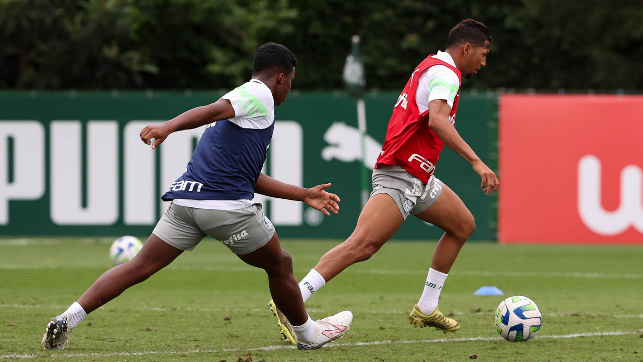 Endrick e Rony (D), da SE Palmeiras, durante treinamento, na Academia de Futebol. (Foto: Cesar Greco/Palmeiras/by Canon)