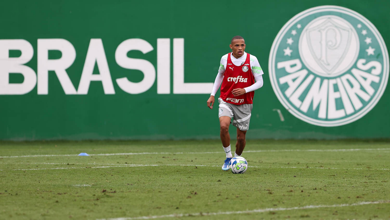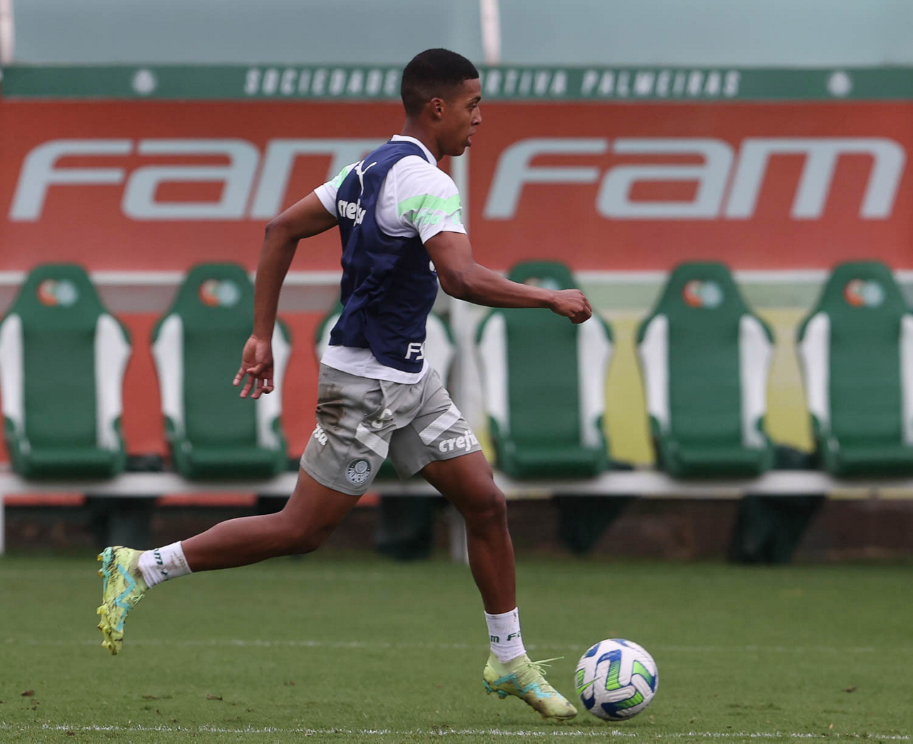 O jogador Gabriel Menino, da SE Palmeiras, durante treinamento, na Academia de Futebol. (Foto: Cesar Greco/Palmeiras/by Canon)