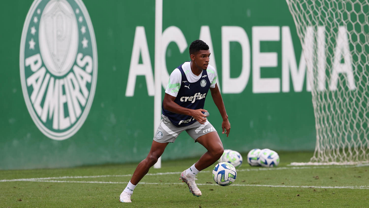 O jogador Endrick, da SE Palmeiras, durante treinamento, na Academia de Futebol. (Foto: Cesar Greco/Palmeiras/by Canon)