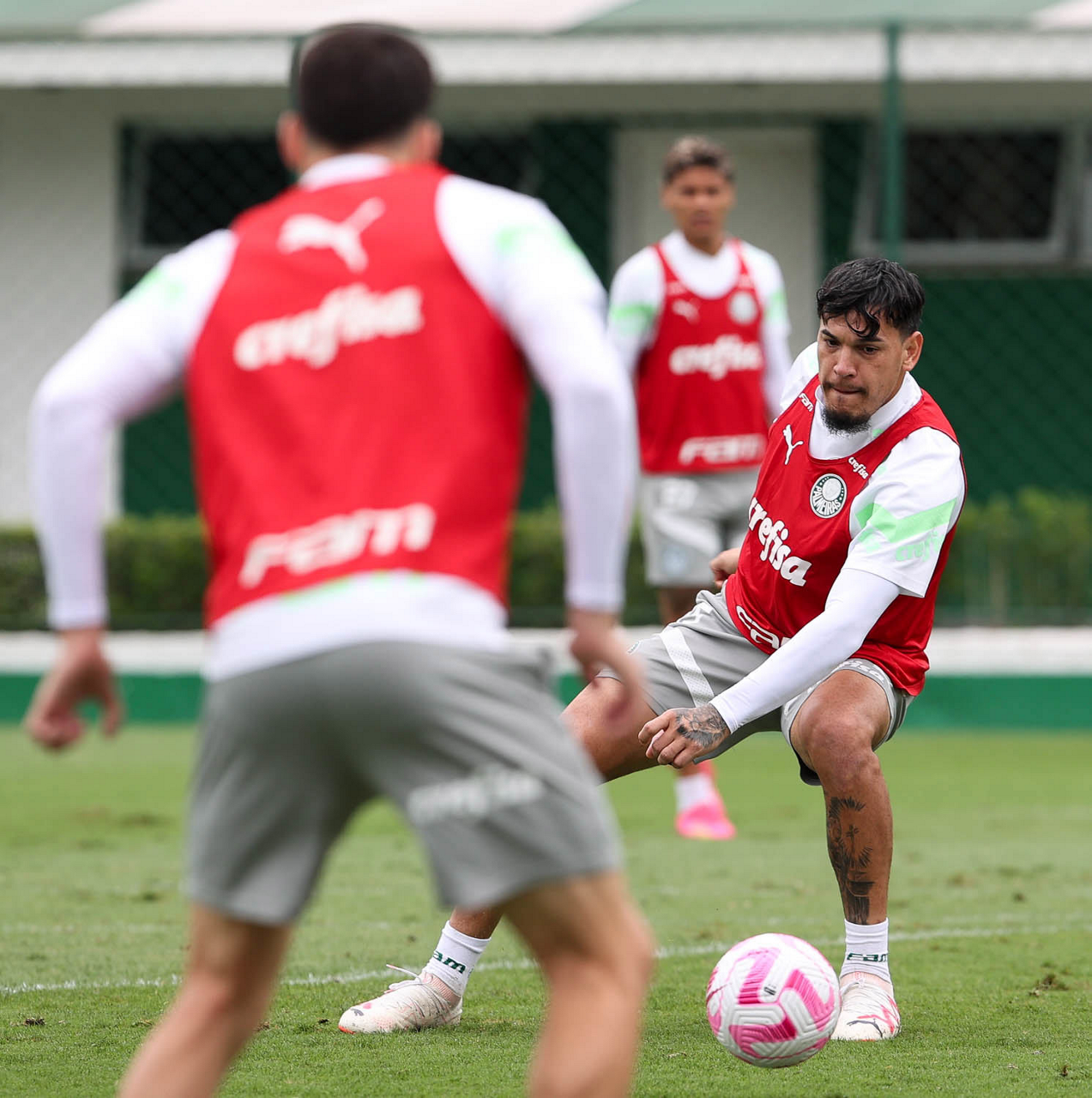 Os jogadores Breno Lopes, Jailson, Luan, Marcos Rocha, Murilo, Marcelo Lomba, Zé Rafael, Raphael Veiga e Addi (E/D em pé) e Rony, Artur, Kevin e Mayke (E/D agachados), da SE Palmeiras, durante treinamento, na Academia de Futebol. (Foto: Cesar Greco/Palmeiras/by Canon)