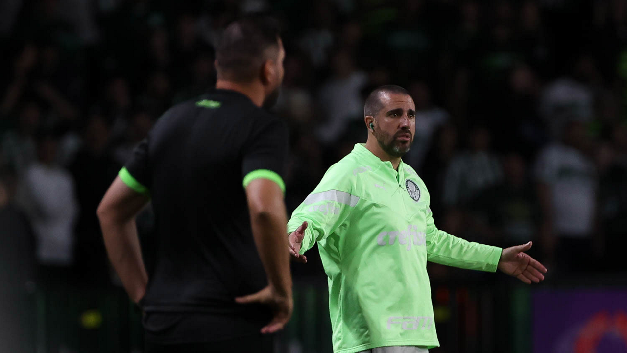 O auxiliar técnico Vitor Castanheira, da SE Palmeiras, em jogo contra a equipe do Coritiba FC, durante partida válida pela vigésima oitava rodada, do Campeonato Brasileiro, Série A, no ´stádio Couto Pereira. (Foto: Cesar Greco/Palmeiras/by Canon)