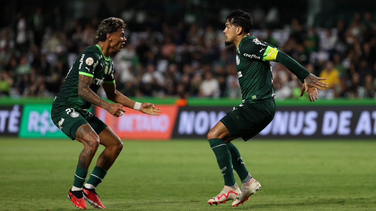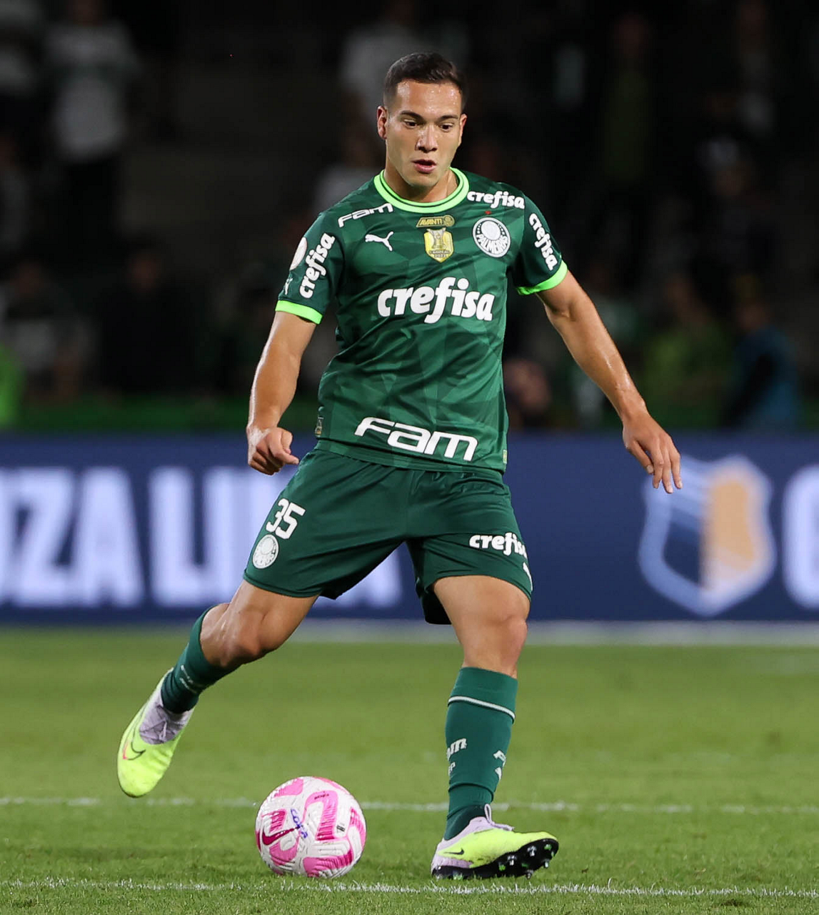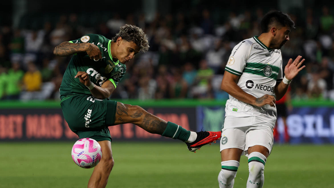 O jogador Richard Ríos, da SE Palmeiras, em jogo contra a equipe do Coritiba FC, durante partida válida pela vigésima oitava rodada, do Campeonato Brasileiro, Série A, no ´stádio Couto Pereira. (Foto: Cesar Greco/Palmeiras/by Canon)