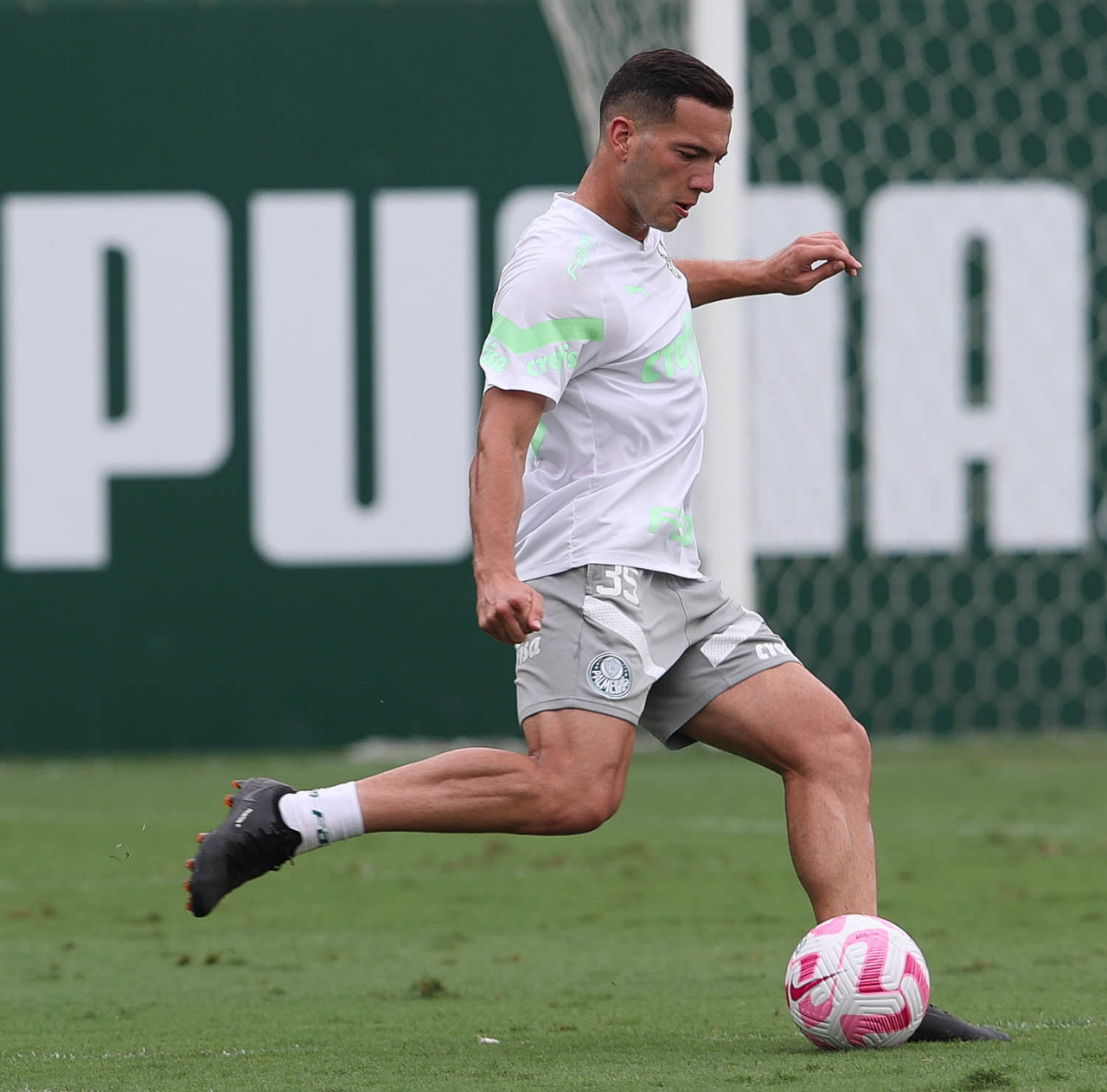 O jogador Flaco López, da SE Palmeiras, durante treinamento, na Academia de Futebol. (Foto: Cesar Greco/Palmeiras/by Canon)