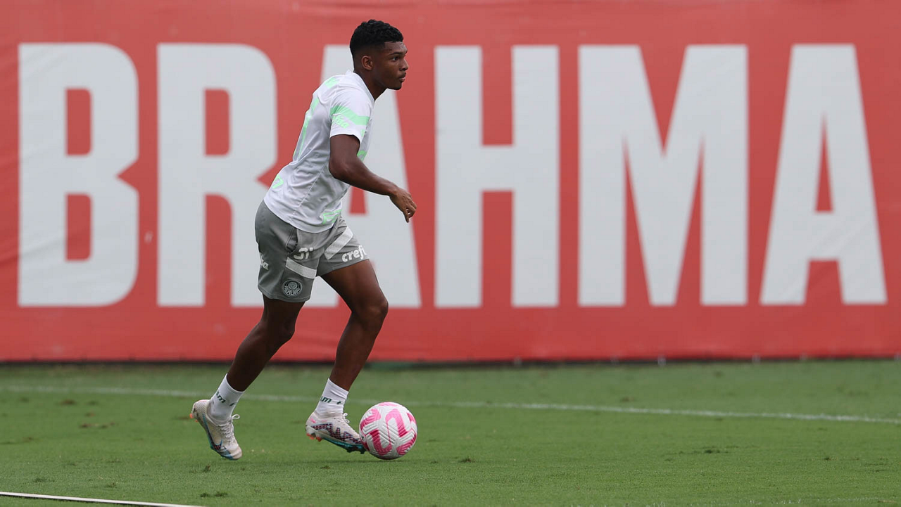 O jogador Luis Guilherme, da SE Palmeiras, durante treinamento, na Academia de Futebol. (Foto: Cesar Greco/Palmeiras/by Canon)