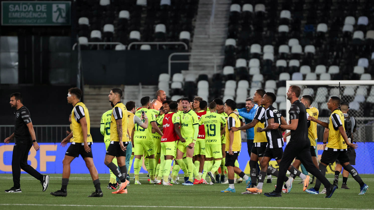O time da SE Palmeiras, em jogo contra a equipe do Botafogo FR, durante partida válida pela trigésima primeira rodada, do Campeonato Brasileiro, Série A, no Estádio Nilton Santos. (Foto: Cesar Greco/Palmeiras/by Canon)