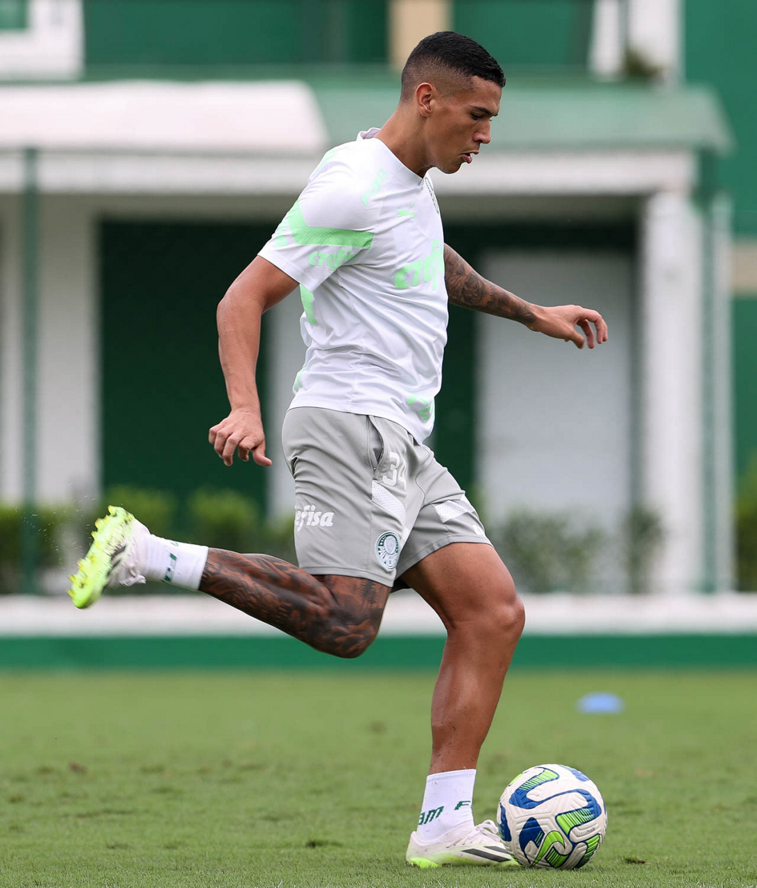 O jogador Artur, da SE Palmeiras, durante treinamento, na Academia de Futebol. (Foto: Cesar Greco/Palmeiras/by Canon)