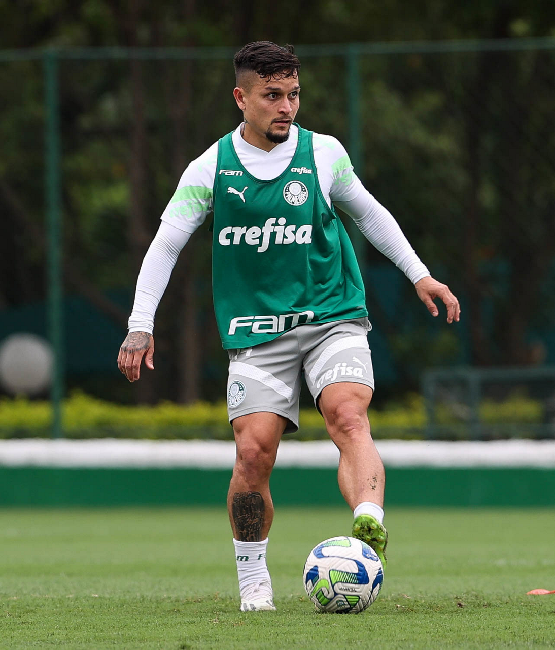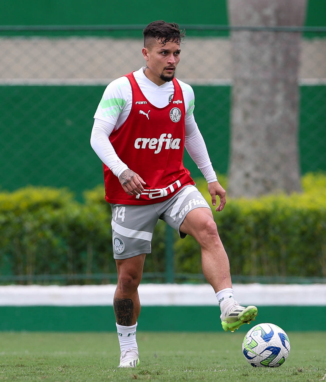 O jogador Fabinho, da SE Palmeiras, durante treinamento, na Academia de Futebol. (Foto: Cesar Greco/Palmeiras/by Canon)