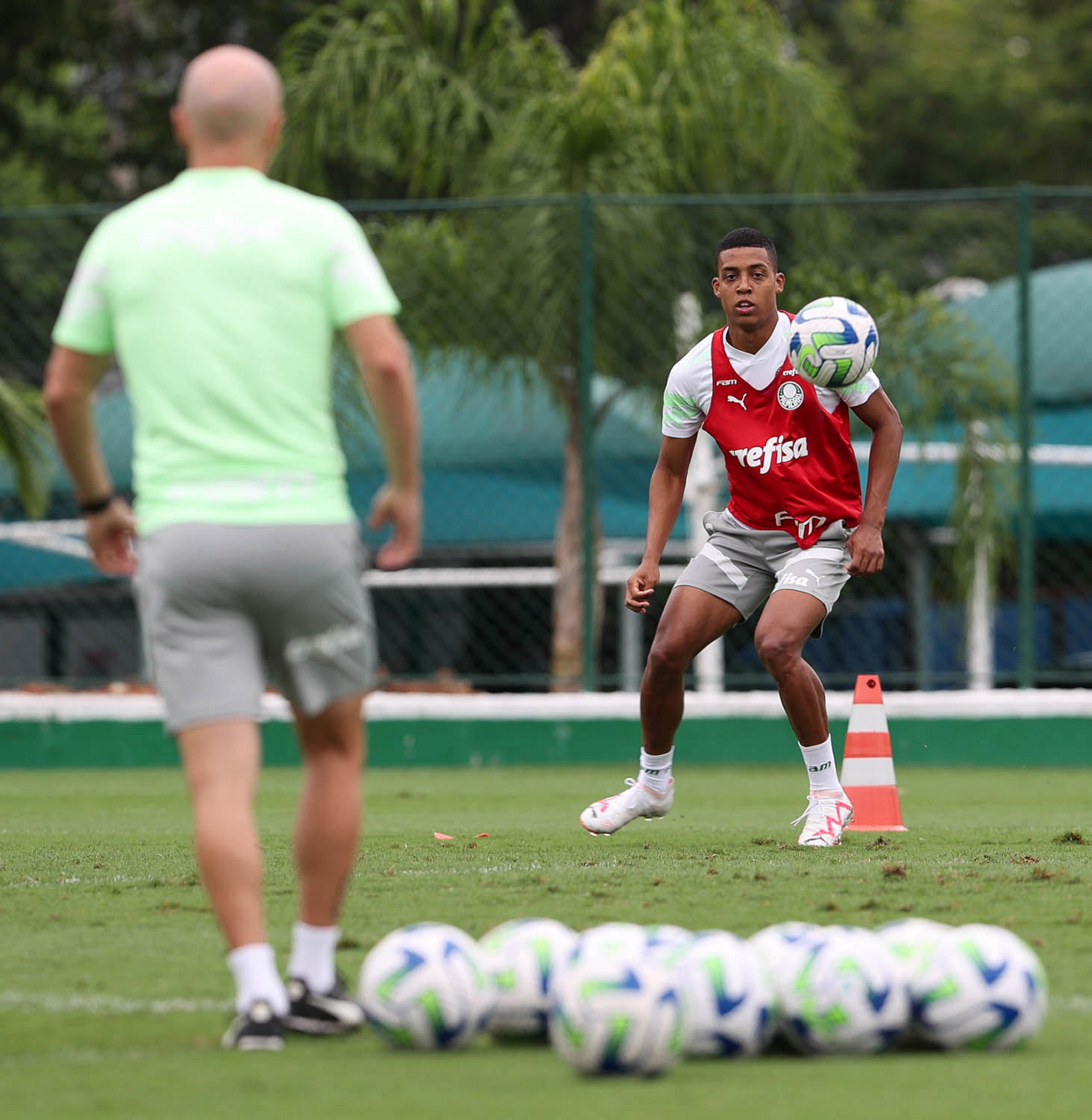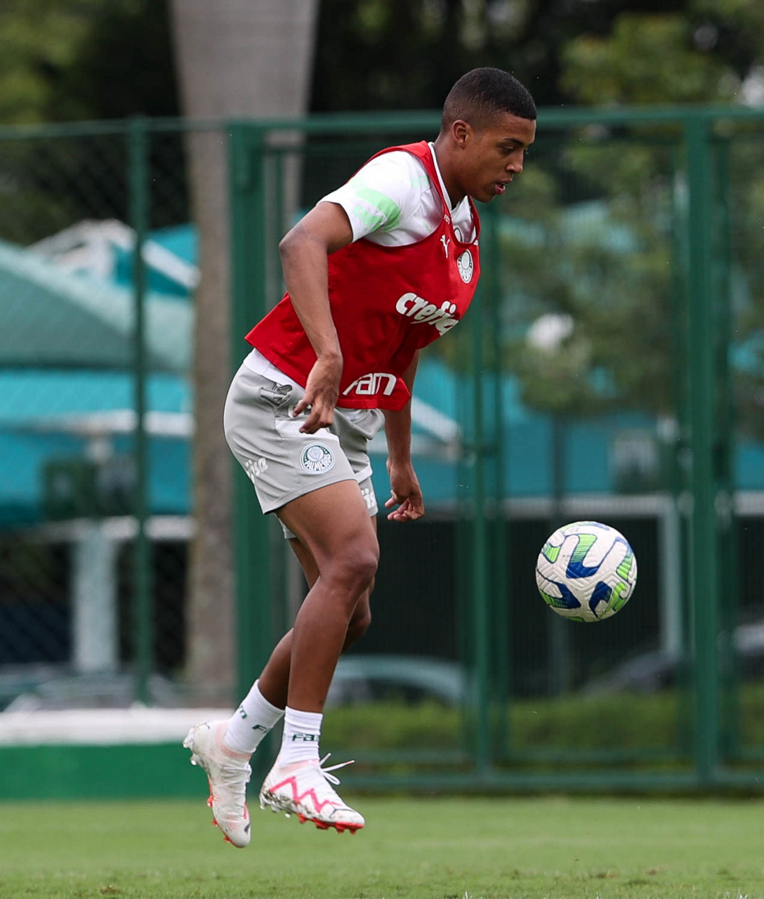 O jogador Luis Guilherme, da SE Palmeiras, durante treinamento, na Academia de Futebol. (Foto: Cesar Greco/Palmeiras/by Canon)