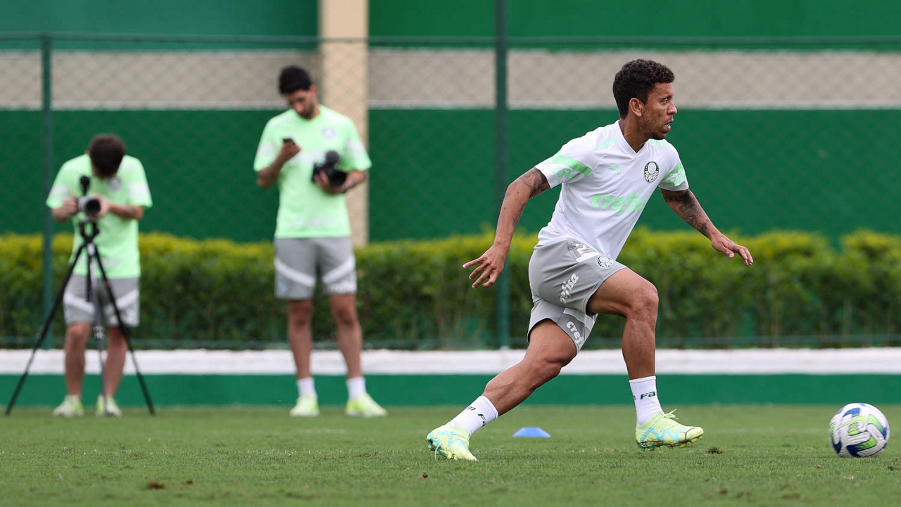 O jogador Marcos Rocha, da SE Palmeiras, durante treinamento, na Academia de Futebol. (Foto: Cesar Greco/Palmeiras/by Canon)