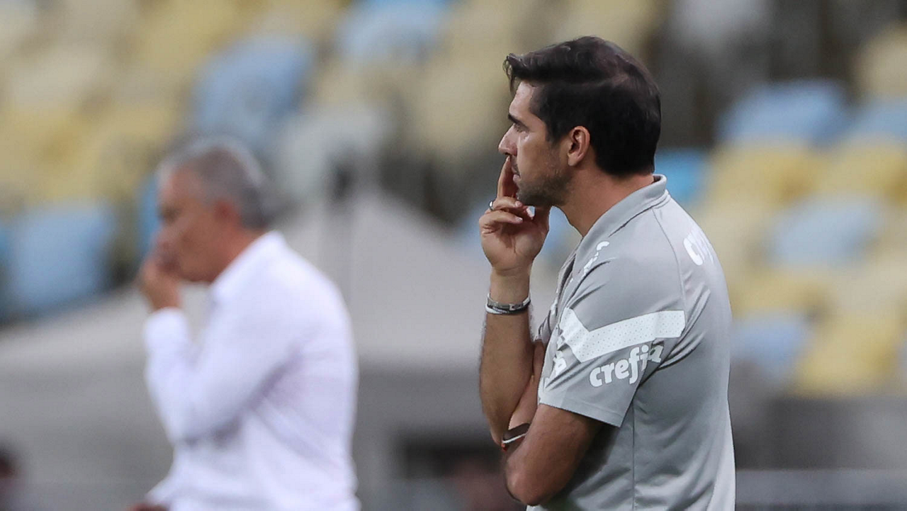 O técnico Abel Ferreira, da SE Palmeiras, em jogo contra a equipe do CR Flamengo, durante partida válida pela trigésima terceira rodada, do Campeonato Brasileiro, Série A, no Estádio Maracanã. (Foto: Cesar Greco/Palmeiras/by Canon)